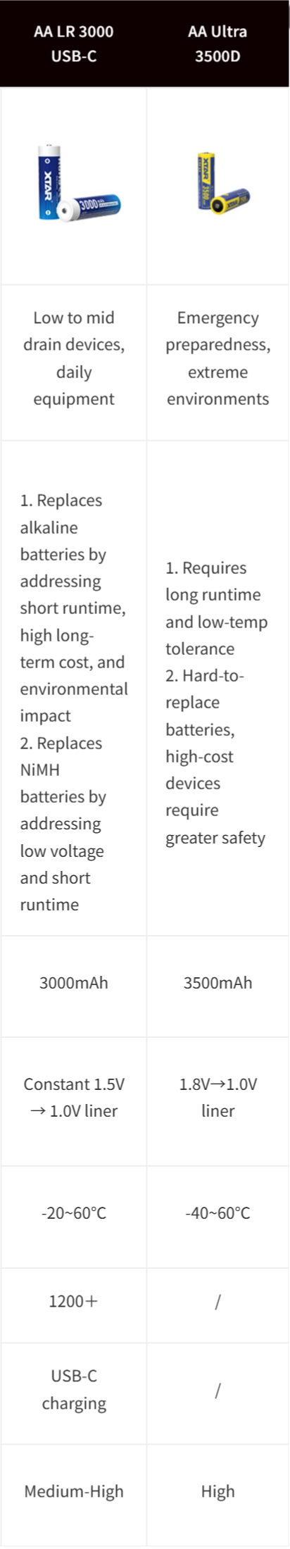【Updated】 XTAR AA Lithium-ion Battery Comparison Table