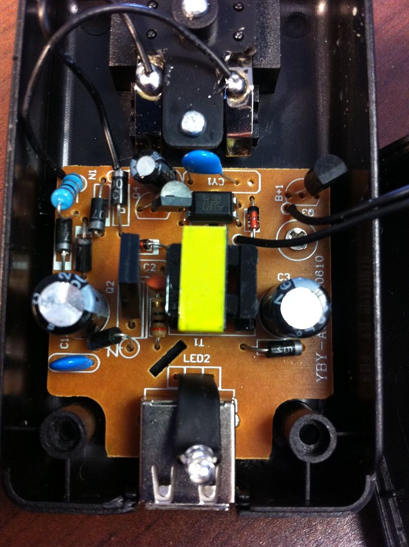 It's not a "YiboYuan" branded charger, and it's only rated 350mA! Doesn't look so great inside, but I'm no electronics guru so I need some of you to chime in and tell me if these internals look acceptable or not. In that last photo, the AC prongs are in the top center with black wires attached, and the output wires are going off the photo on the right side. I have not powered it up or anything. So does this look usable? Or does it look unsafe or untrustworthy?