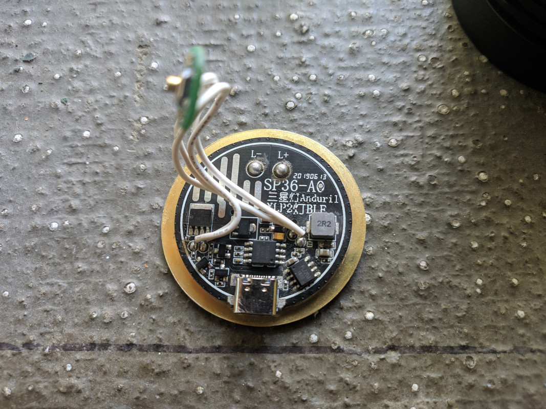 Sofirn SP36 Anduril driver reduced to fit and sitting in place.