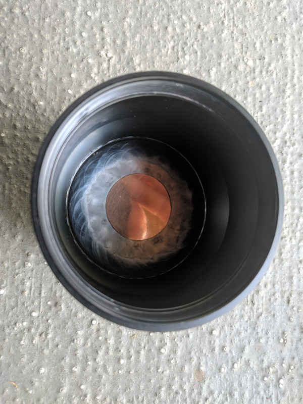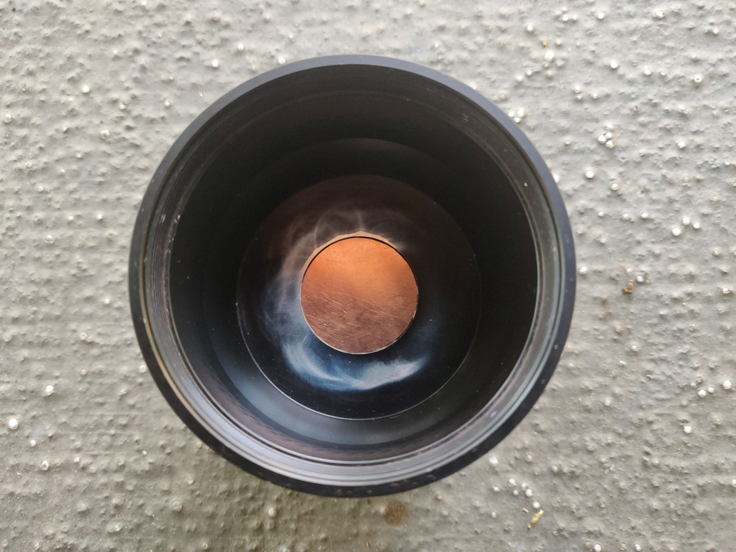 Copper disc to fill original mcpcb pocket in place and secured with a minimal layer of arctic ceramic epoxy. Just needs more fine sanding to remove a little more anodizing and a bit of polishing.