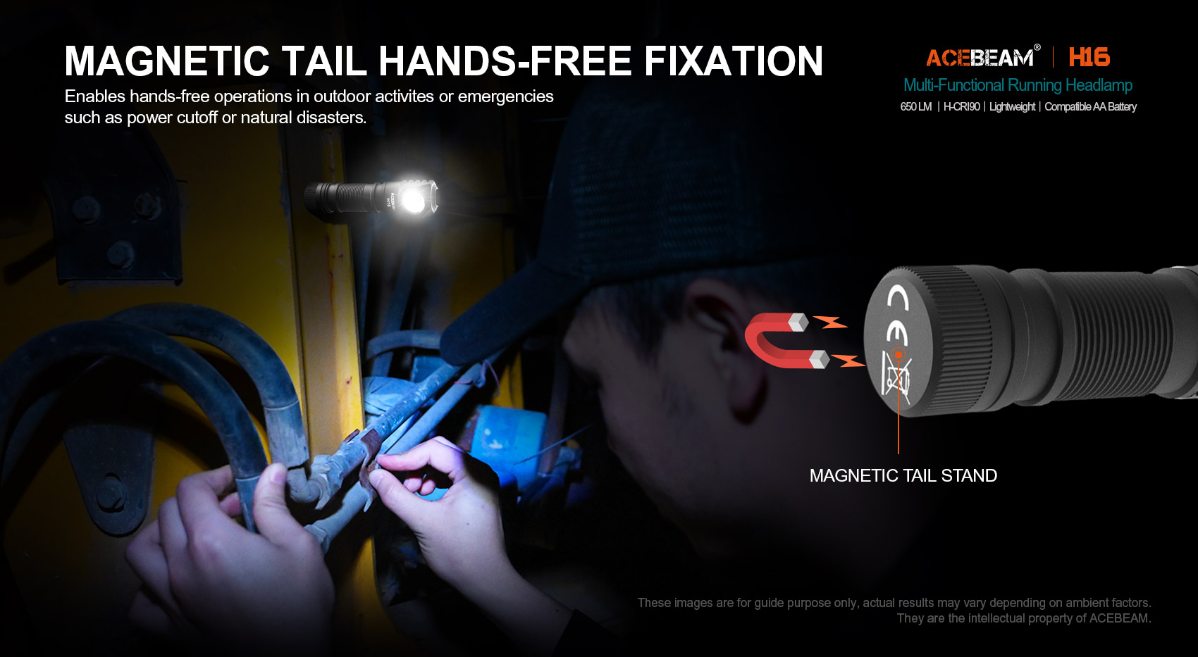 It is the first high-color-rendering AA running headlamp on the market that uses a 519A LED which produces a 5000K, uniform, and full large beam. The light is soft, comfortable, and non-glaring. Compatible with the standard AA battery, which is reliable, inexpensive, and easy to find. Can be firmly attached to a metal surface with a magnetic tail or clip in your pocket as a chest lamp, offering various lighting demands.