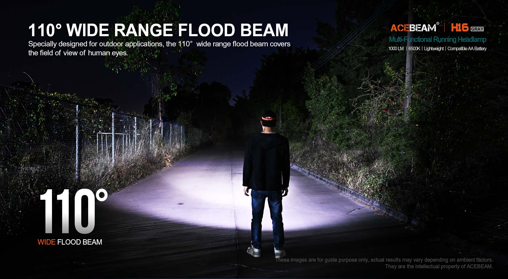 H16 Gray: 1 x Cool White, Color Temperature 6500K, Max Output 1000 Lumens, 110° Wide Range Flood Beam.