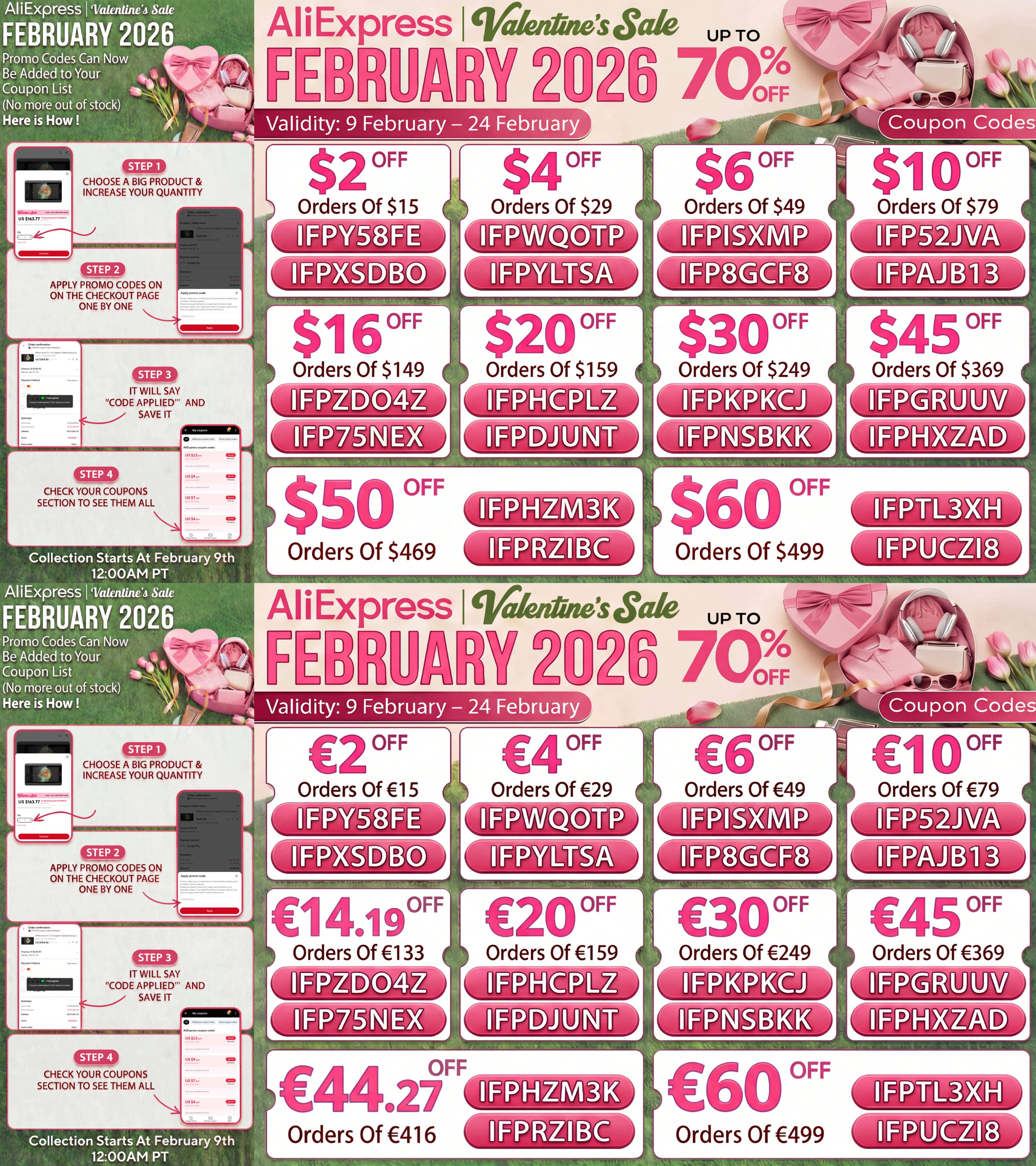 The discount codes below are Collectible and single-use, so make sure to secure them in advance because they may run out at any time; to avoid the out of stock error, add a high-price product (above $500 or β¬510) to your cart and apply the codes one by one at checkout so they are saved to your coupon list, ideally on March 16th exactly at 3:00 AM EDT or 8:00 AM CET, and below you will find the Anniversary sale promo codes in USD, EUR, GBP, AUD, CAD & BRL along with the global codes available throughout March 2026.