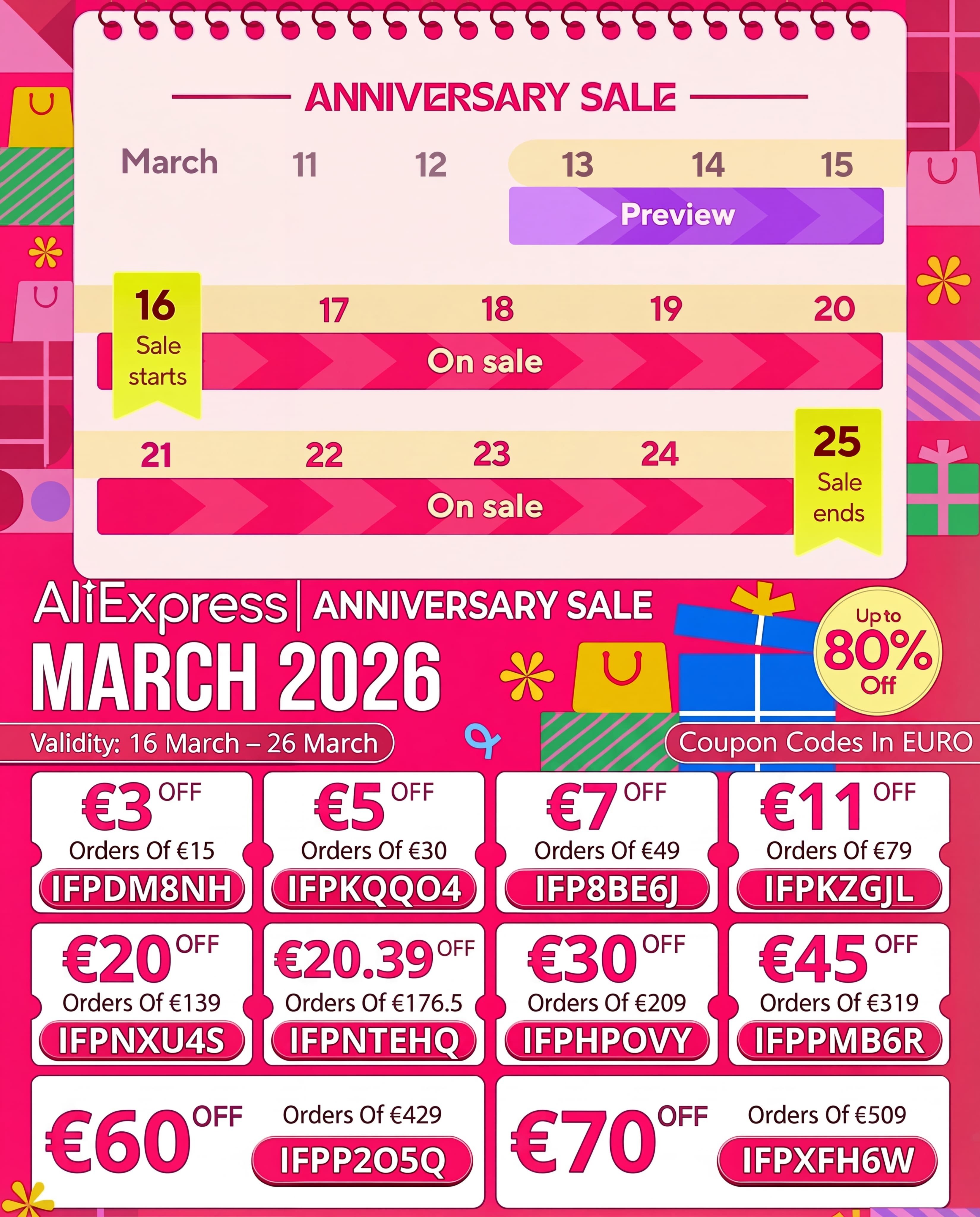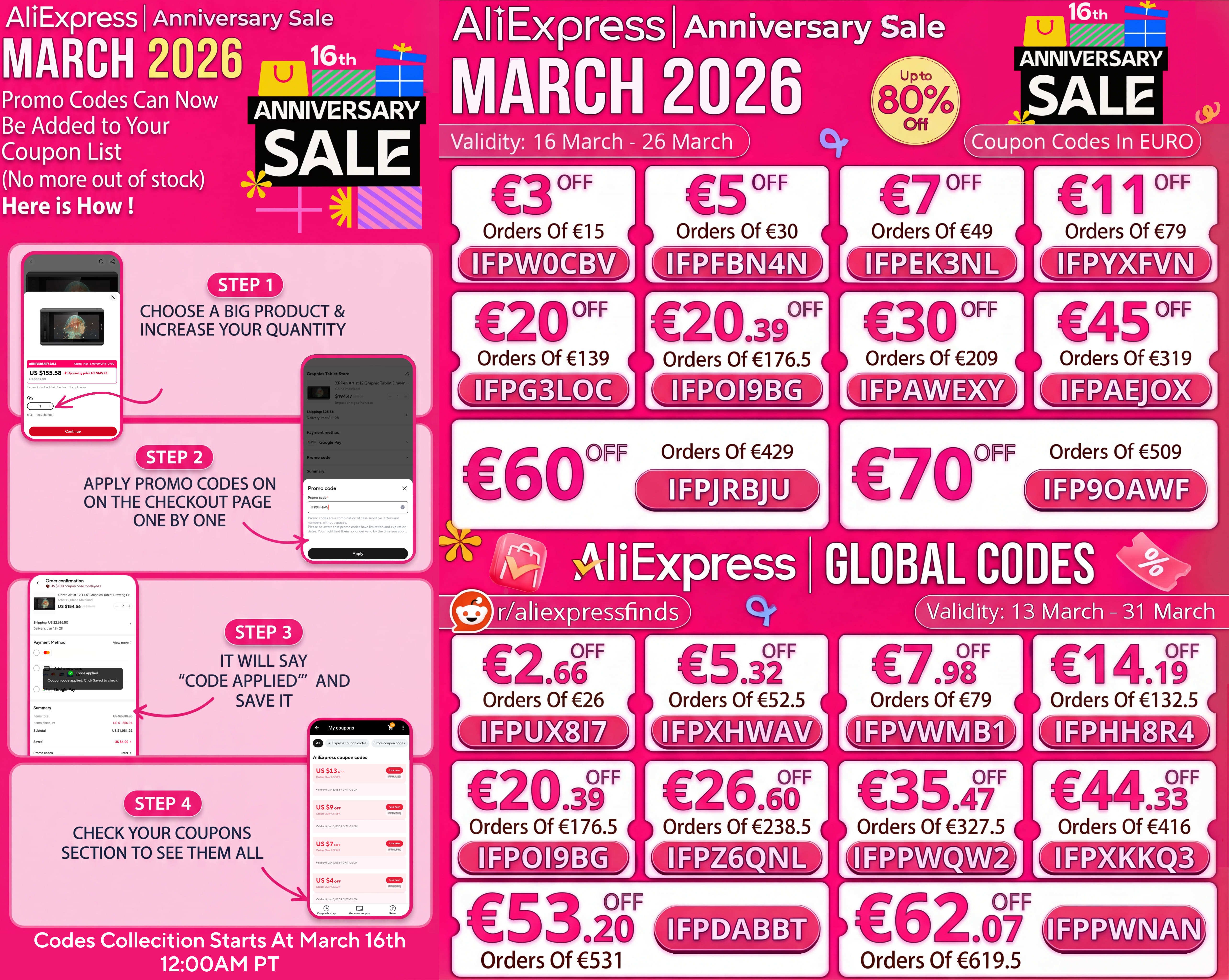 AliExpress March 2026 16th Anniversary Sale Global Codes (In EUR & GBP)
