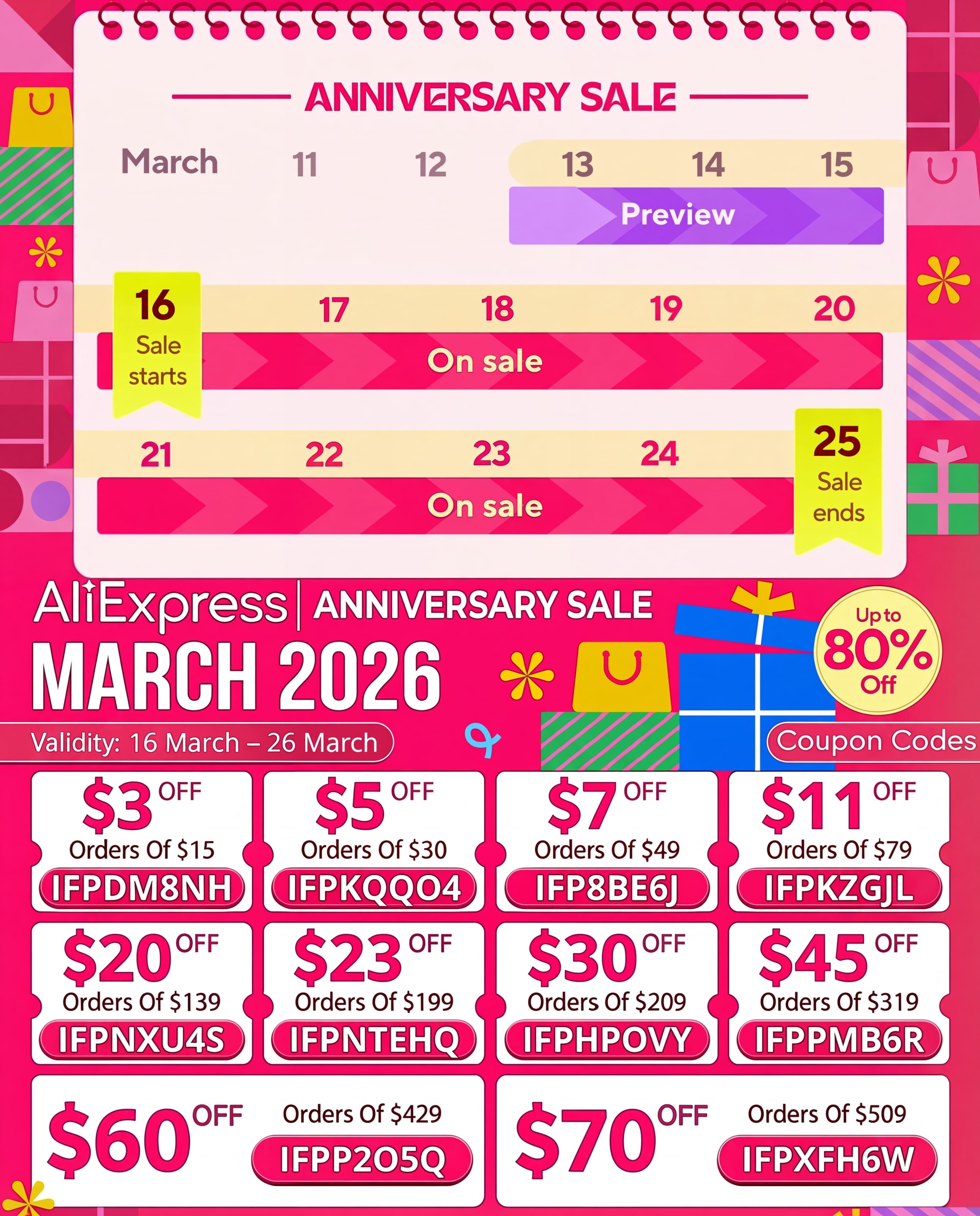AliExpress March 2026 16th Anniversary Sale Codes (AUD)
