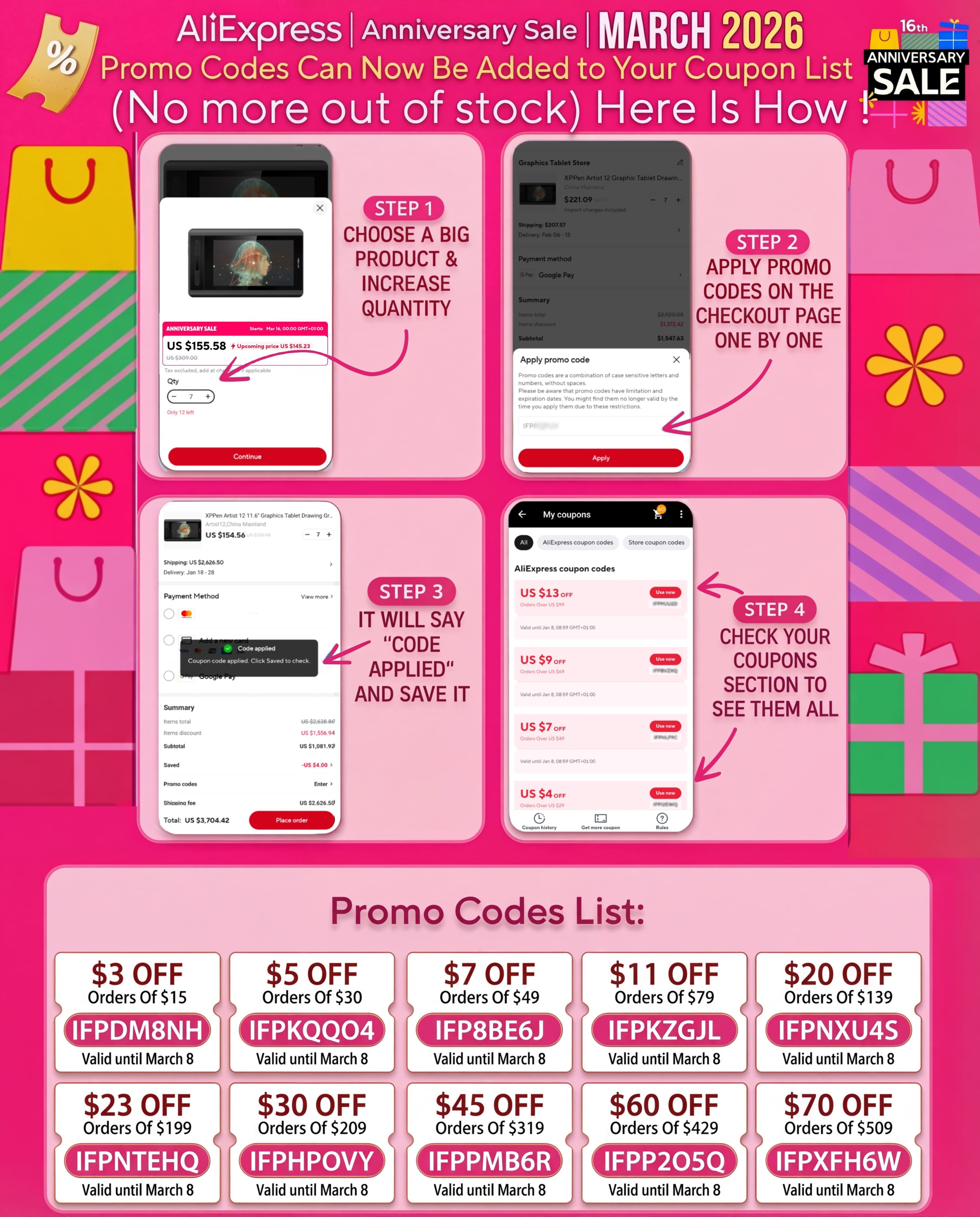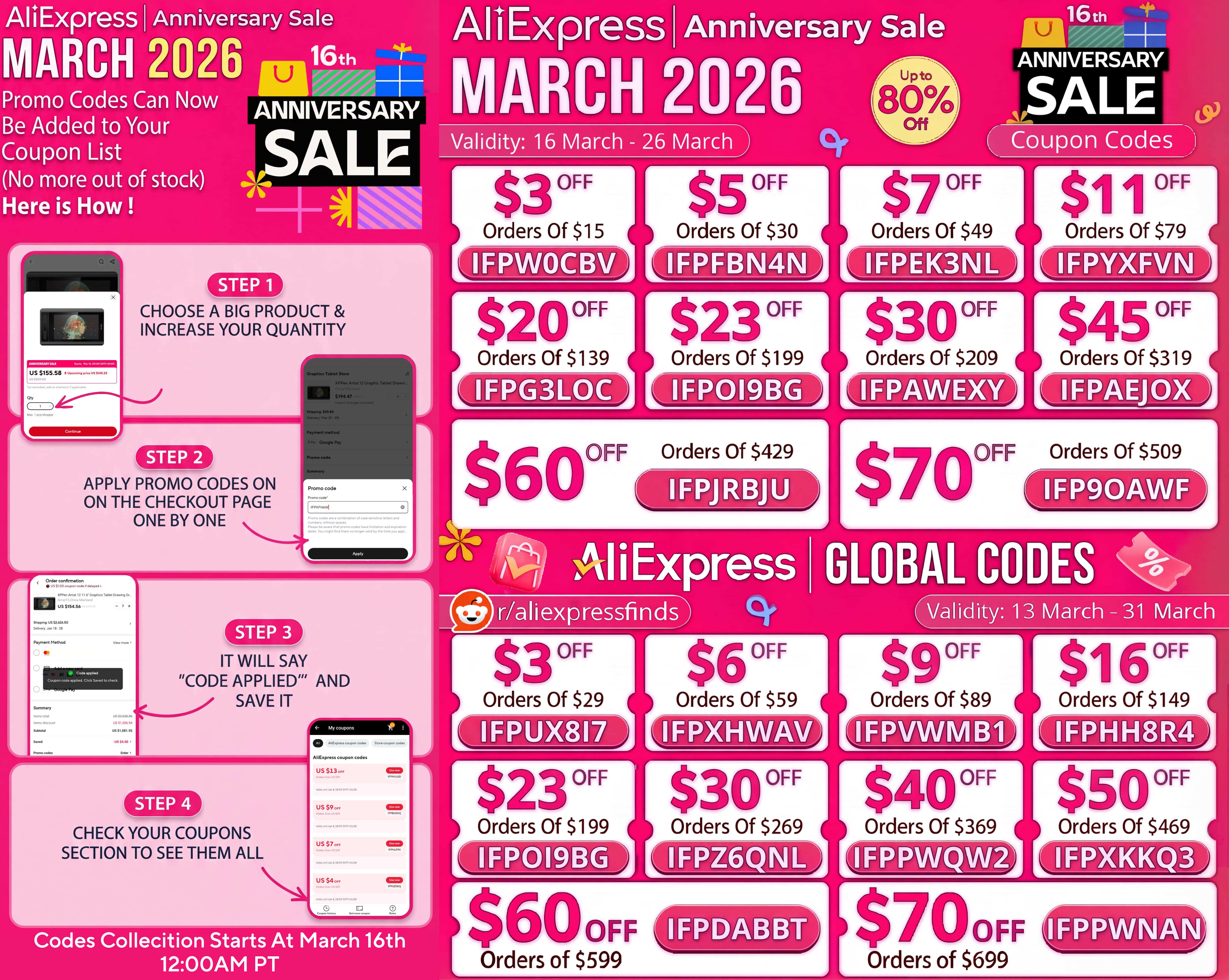 AliExpress March 2026 16th Anniversary Sale Global Codes (In USD)
