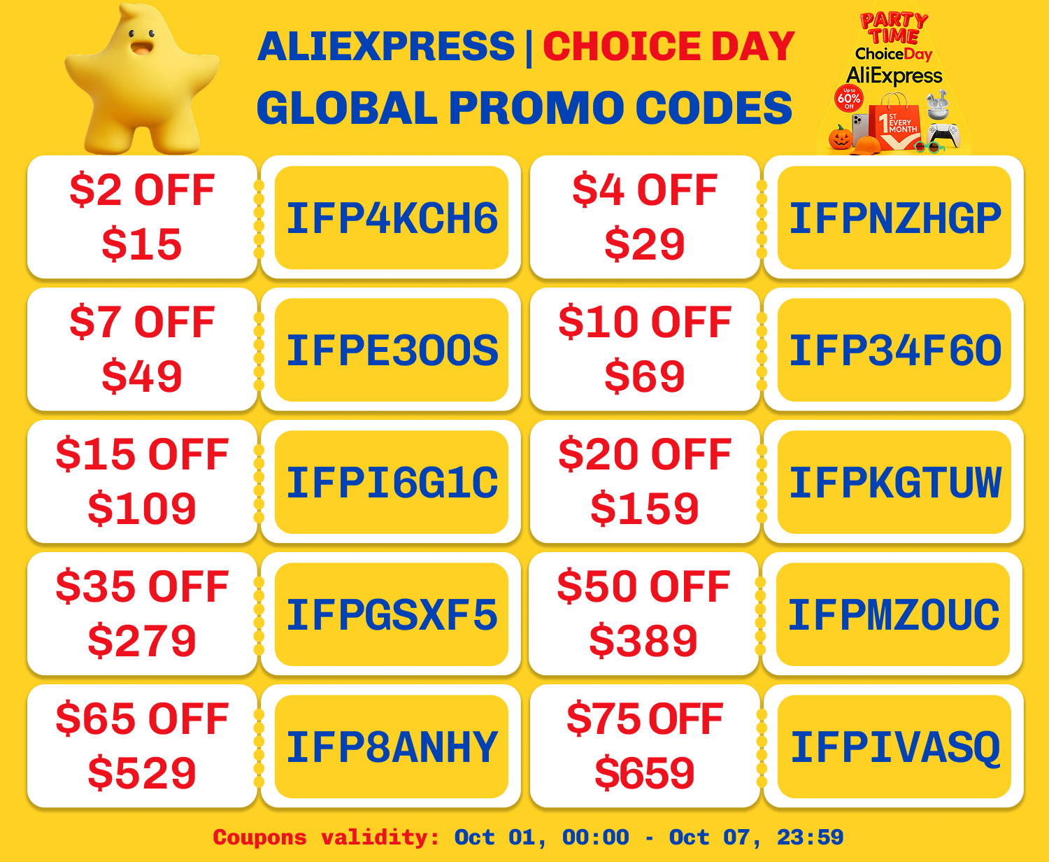 Looking for the best AliExpress promo codes this week? Here are the latest Choice Day coupon codes valid from October 1β7, 2025 plus extra global codes running until October 10.
