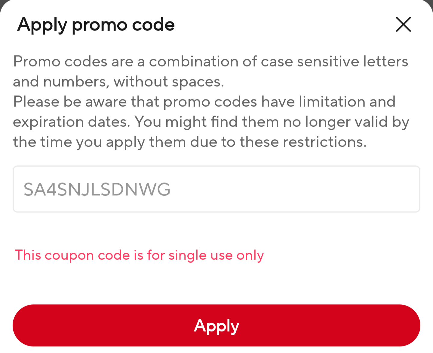 I more or less had the same, in that I got the message that ‘it is for single use only’. It did gave me the option to apply it though, but warning me I would loose some of the discount that I already had, so making it more expensive.