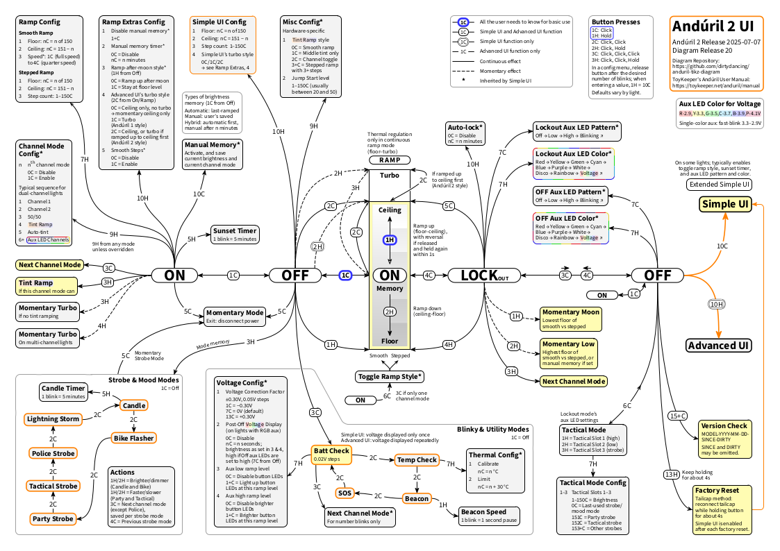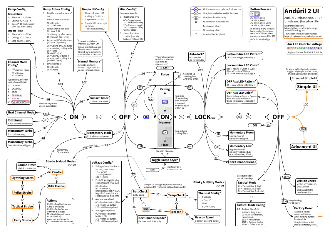 Good call. Also, in addition, the way the TikZ diagram is set up makes it possible to very easily define whether a function is (Extended) Simple UI, or Advanced UI only. This is demonstrated in an exemplary model-specific diagram for model number 0135, hank-emisar-2ch (source), which also includes the model-specific default settings. In case of interest, such model-specific diagrams could readily be forked from the vanilla generic diagram (source) over at GitHub.