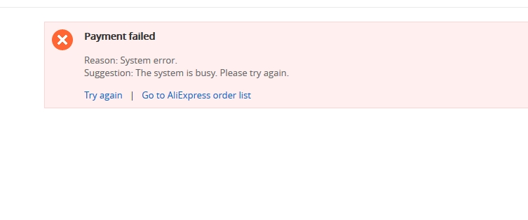 I order ~10-20 times a month on AE and only had a few times this problems. If i try it 1-2 days later it will usualy work. It happens only on AE. Ordering from BG, GB Fastech. . . workes without problems.