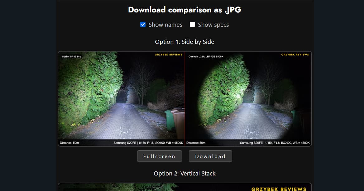 I also added a compressed comparator, which could be used in reviews or comparisons. It doesn’t have the comparison downloadable section, only includes beamshots for 1 location and is easier to upload beamshots to.