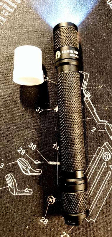 This flashlight is very similar to the Lumintop Tool in size, construction, performance, modes, and it even comes with a diffuser. Here are the outputs::