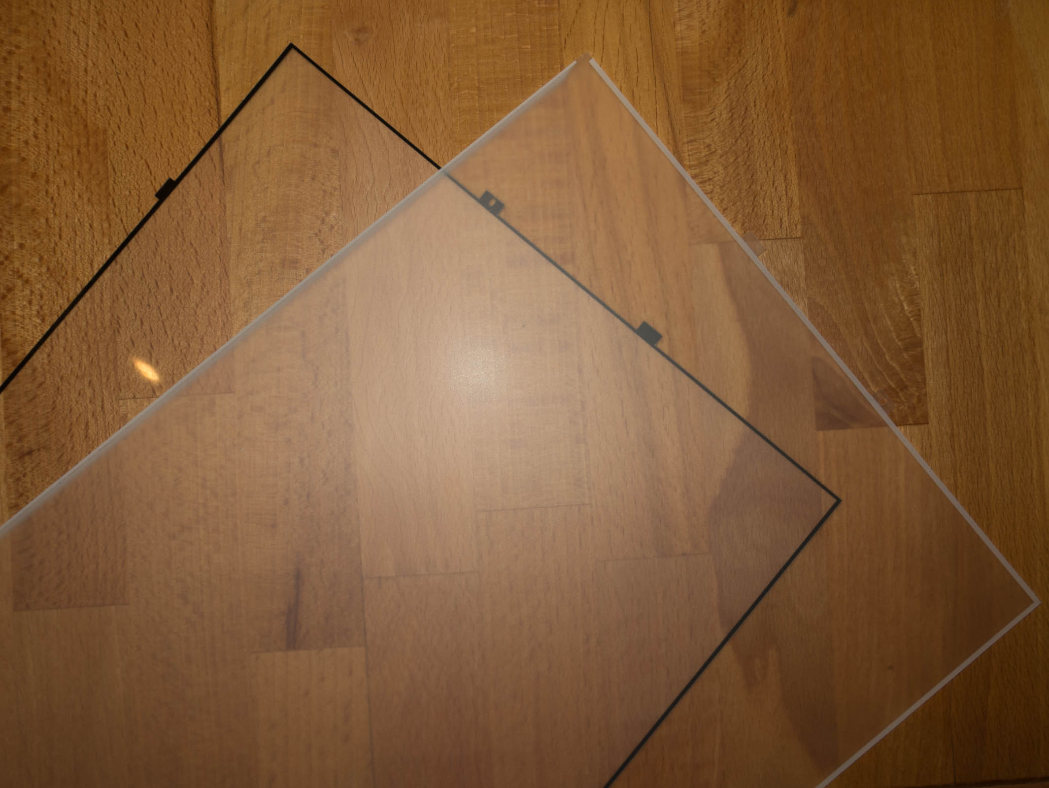 the polarizing films are glued the the LCD glass panel