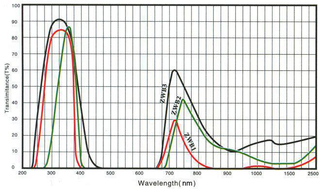 ZWB2 actually better for 365nm. ZWB3 is for shorter wavelengths and transmits much higher into the visible range: .
