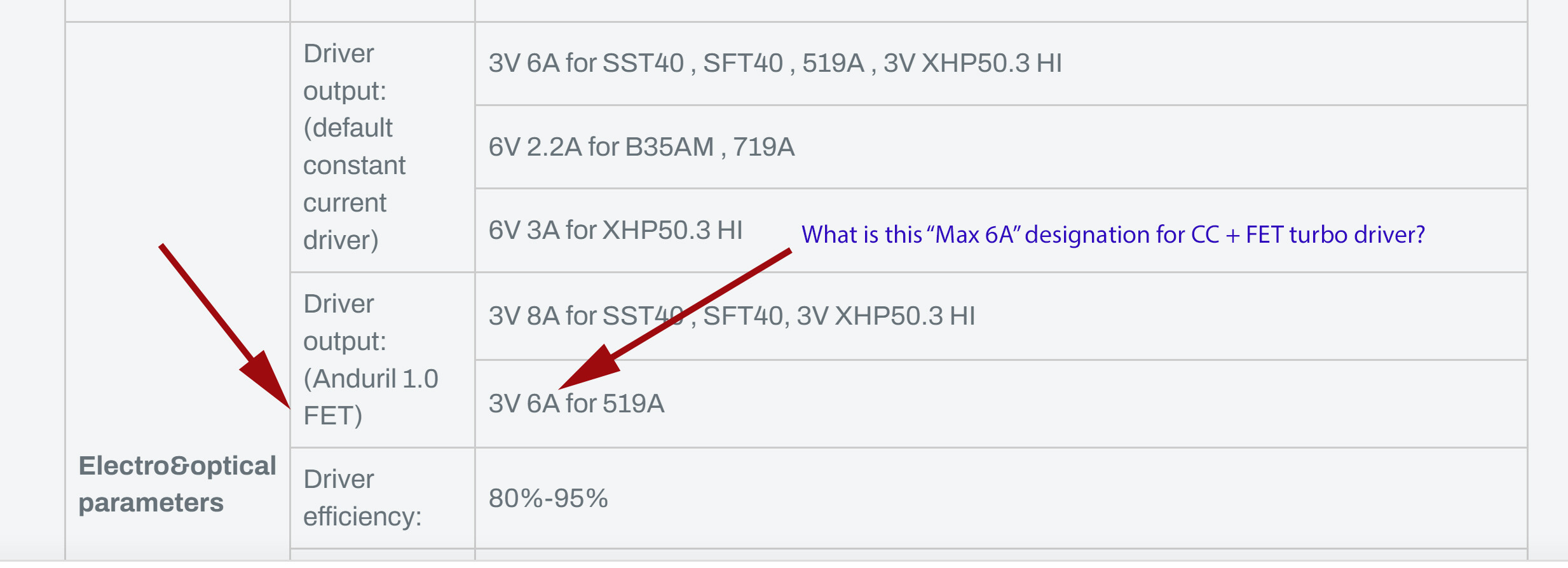 Like listing “6A” for the CC + FET driver of my S21E with 519a?