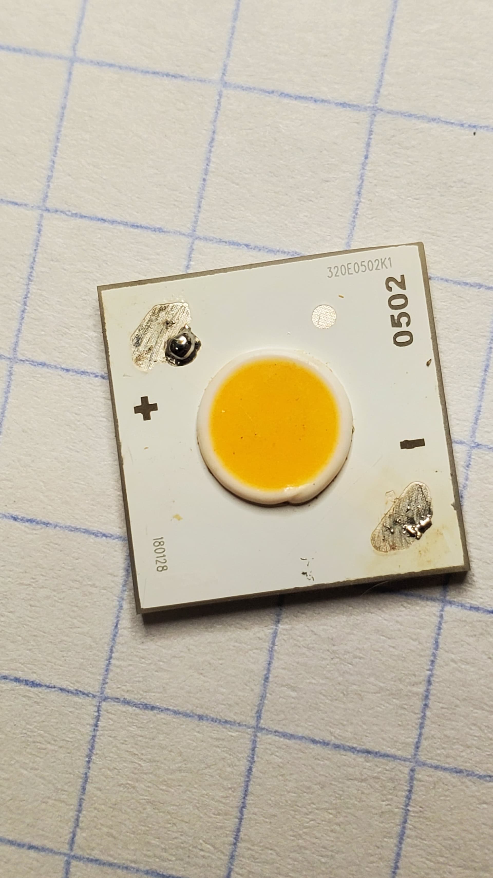@SammysHP where are the bond wires for this LES on this COB LED? Why is this LES so weird looking, not like the 5050 round-die LEDs? And also, why are there no solder pads on the top of ‘Yinding’ 5050 round-die LEDs visible? Right, because the 5050 have contacts via XM-footprint on the underside.