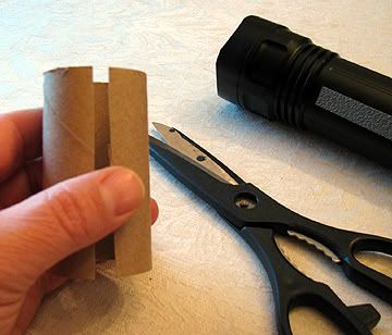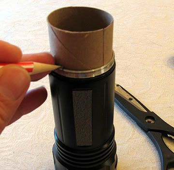 Make sure the cardboard roll is bottomed out in the flashlight and pencil a line around the very top. When complete