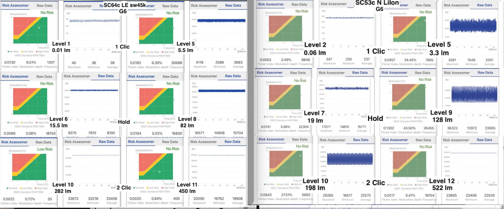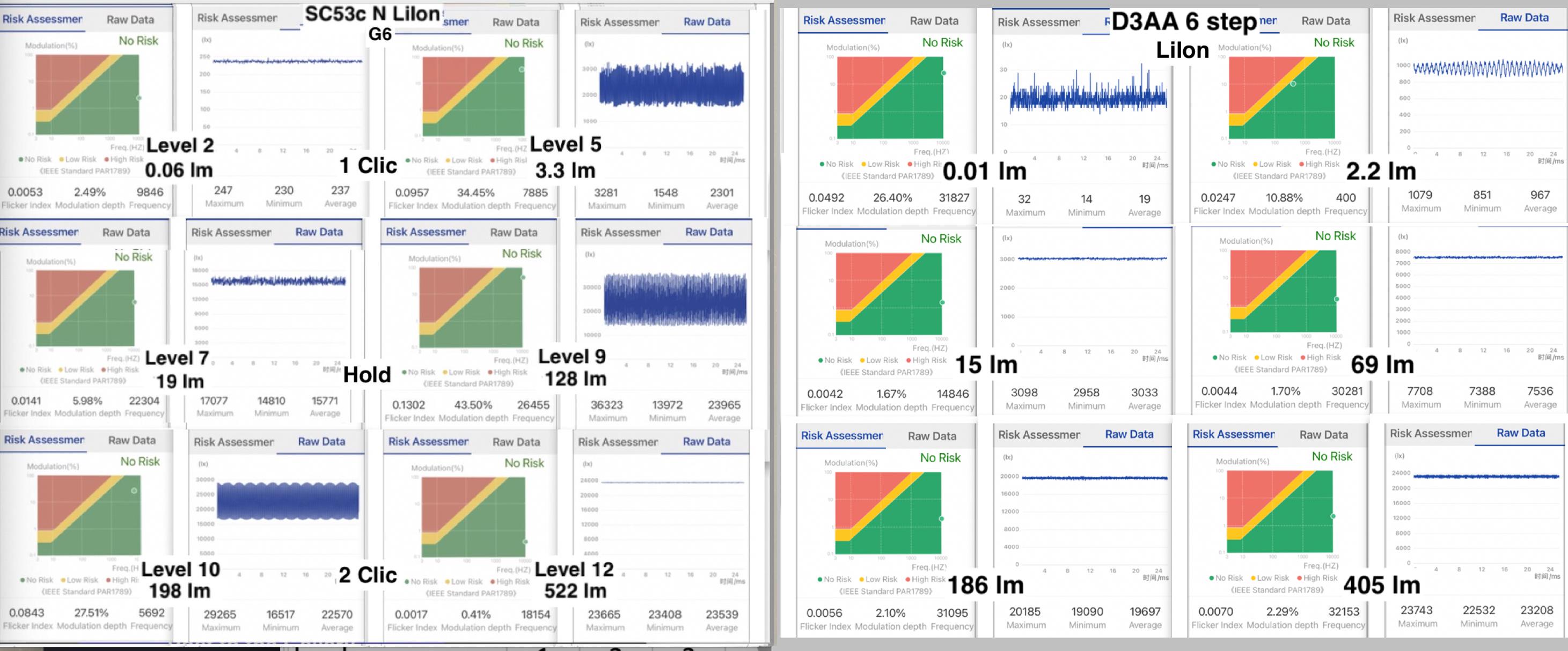 L4 has low frequency flickering, too weak to measure by opple, but I think 50-100Hz.