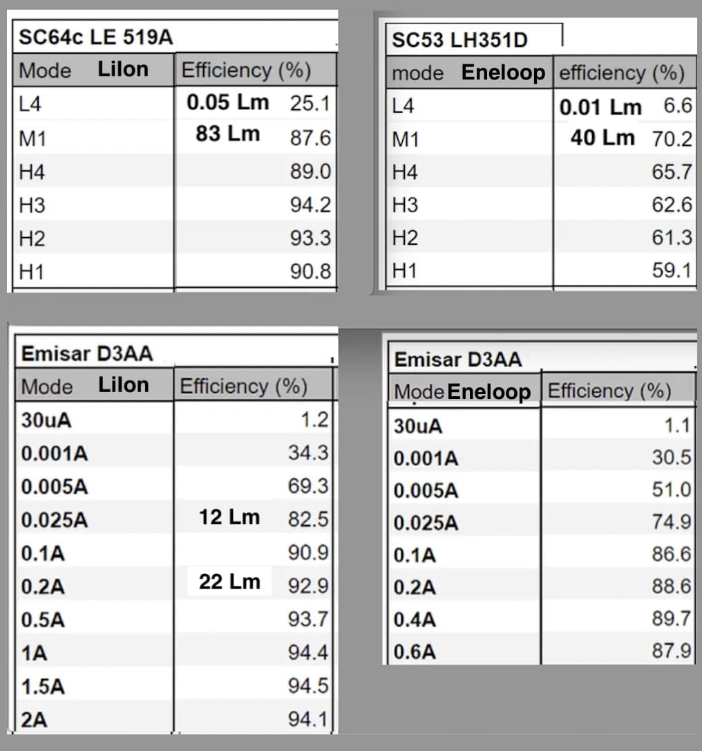 I wonder if the boost driver he has for single emitters is as good? I have a dm11 with xhp50.3. I know it’s a heck of a lot more efficient than the fet driver in my ts21. Lol. Went for an hour walk last night, mostly at 322 lumens (mode 5) with occasional turbo boosts, and I’m still at magenta so over 4.1v. And my charger stops at 4.16 so it just sips power. Checked with MM and 5000mah cell is at 4.1v