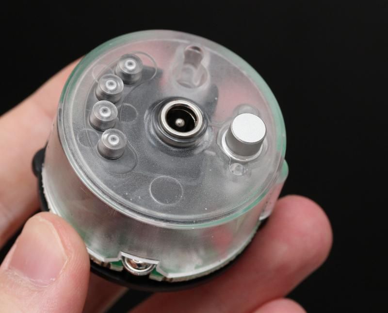 Here are the four battery indicator lights, button for activating them, and charging port.