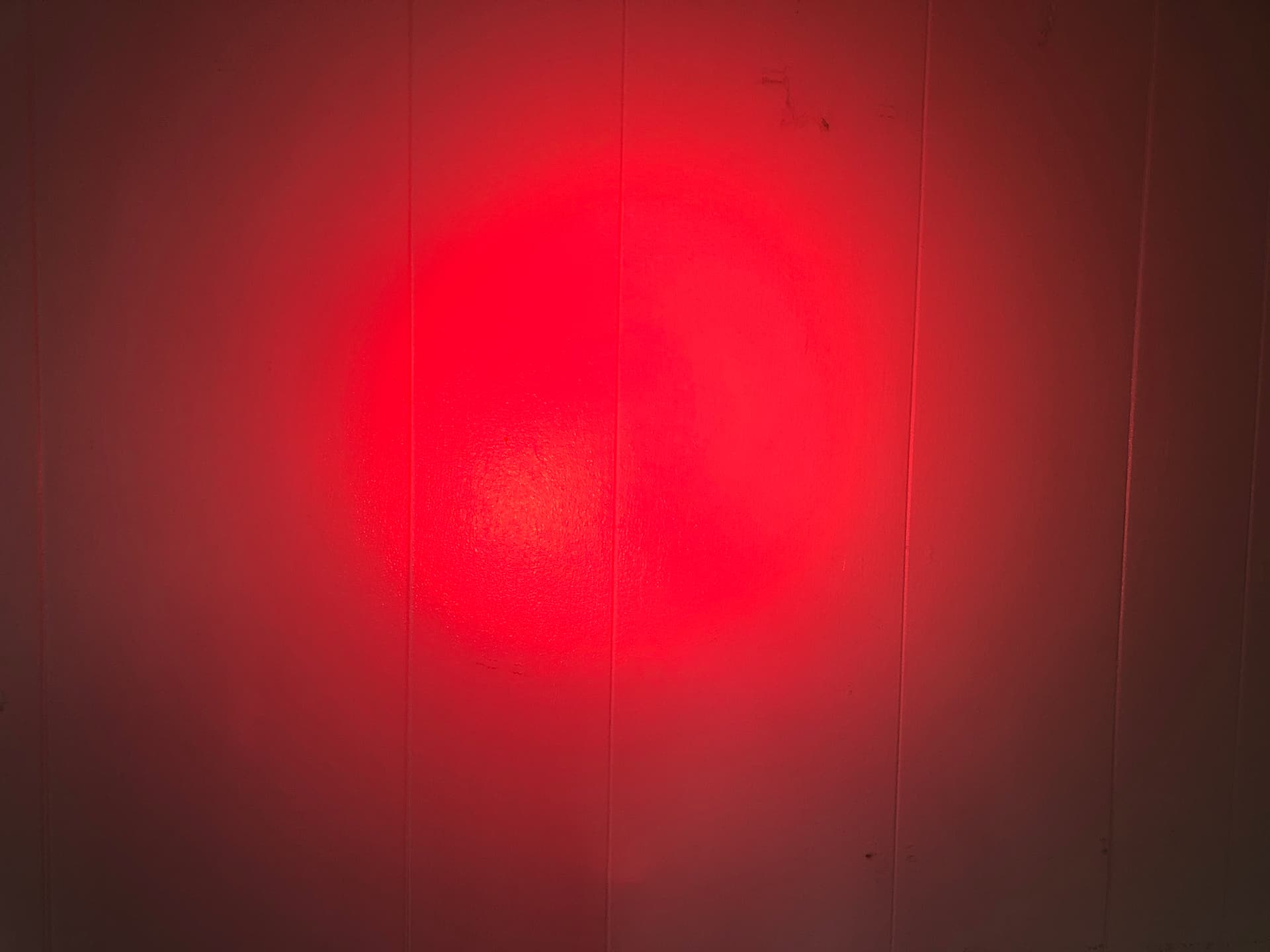 - The Red LEDs are 620 nanometer, with a floody low mode of 0.2 lumens that seems suitably low for dark adapted situations. The beam is wide and floody with even diffusion and no artifacts.