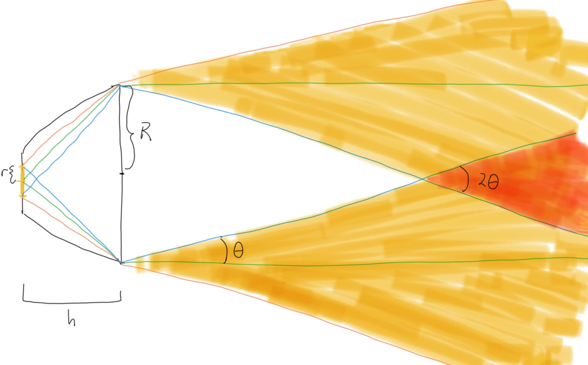 By circular symmetry, it is not too difficult to see that the hotspot takes the shape of a circular cone; thus, it is sensible to compute its apex angle. For consistency, I will let