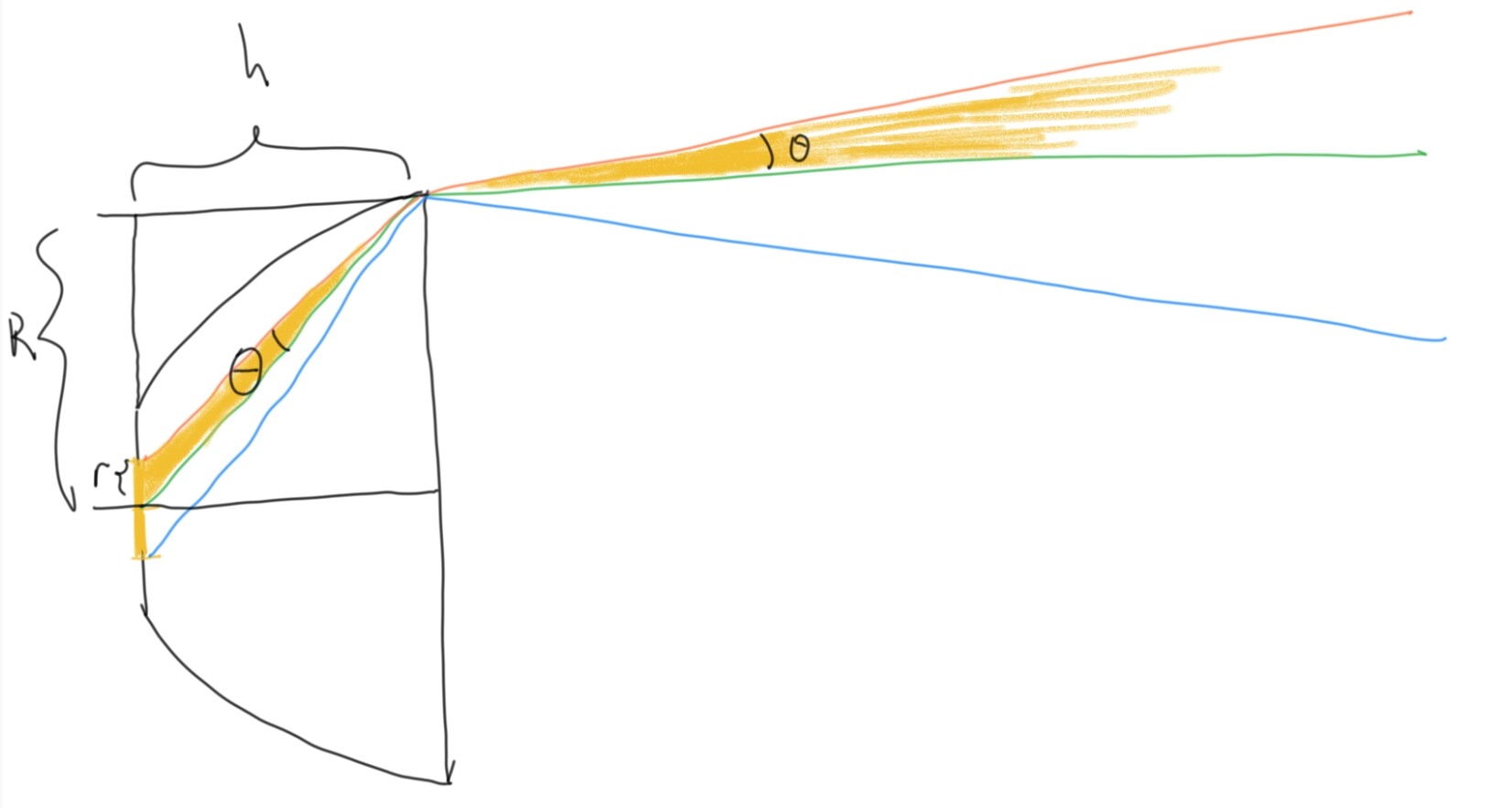 I’m actually pretty curious where the h/D ratio falls for most lights. For throwers with very deep reflectors (like Convoy S6) 1 seems a good estimate, but I get the feeling that most lights would fall around 0.75-0.85. Fortunately we do not need extreme accuracy, given the fuzziness of the hotspot boundary. It would be nice to omit one parameter, but it remains to be seen how much variance there is in reflector aspect ratio, and how much it affects the calculation.