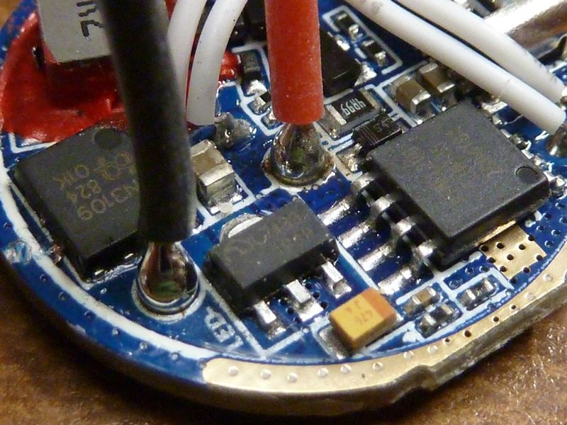 I'd upgrade the wires to 18 AWG, and may add some solder to the driver ring, where it makes contact to the battery tube - not sure if it's making good contact there. Should upgrade Anduril while I got it open.