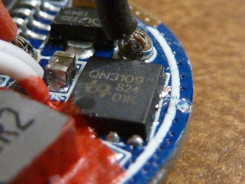 The LED wires are 20 AWG, MCPCB is 1.5 mm thick - wish they would make them thicker - lot of amps and heat here: