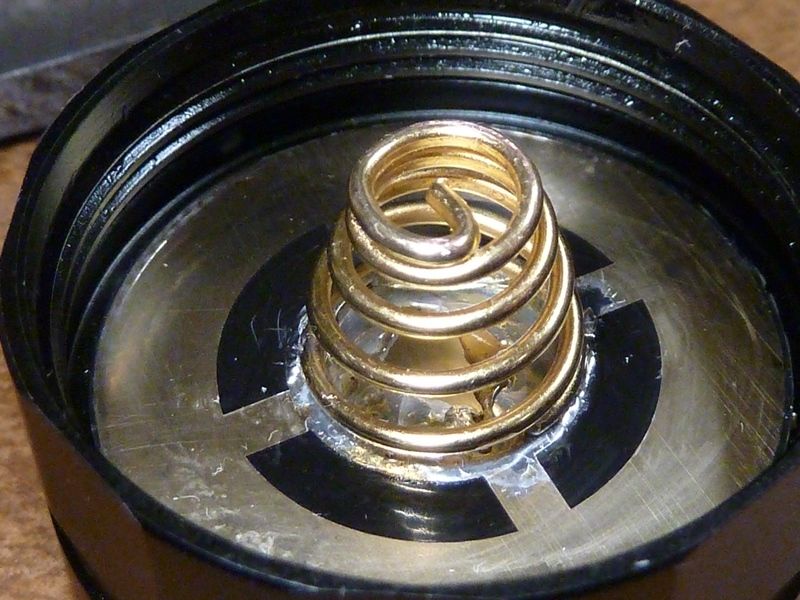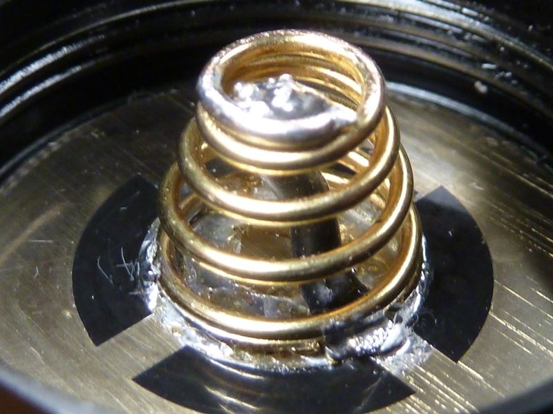 18.- Solder wires then test the flashlight to see if it works before re-installing the centering ring, reflector, glass and don’t forget to install the oring under the crown, you can hold it there with lube so it doesn’t move and get crimped by the glass.