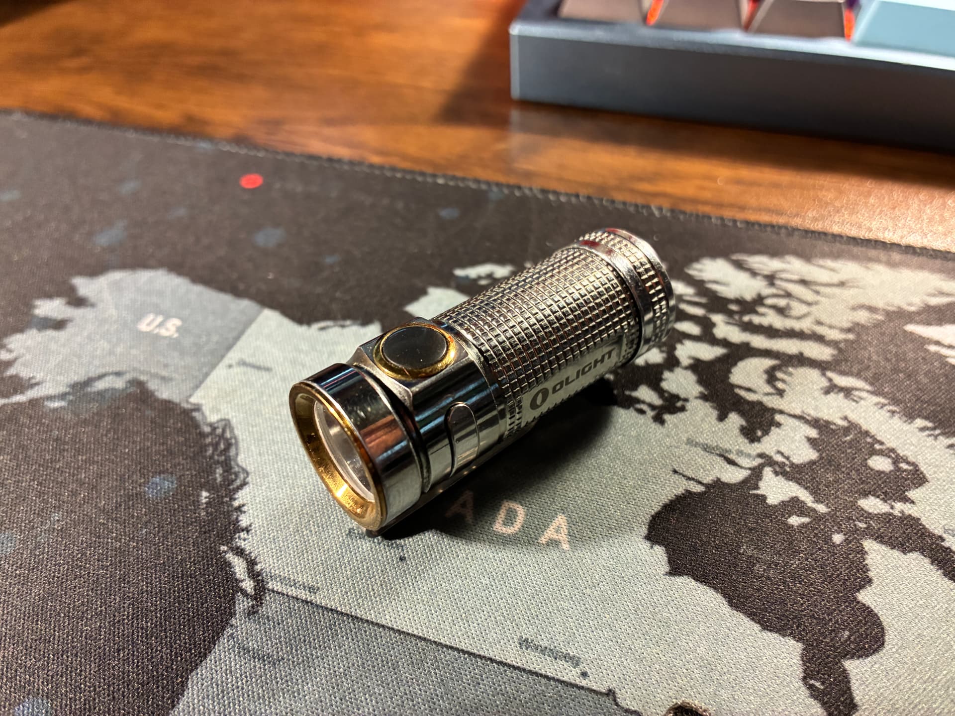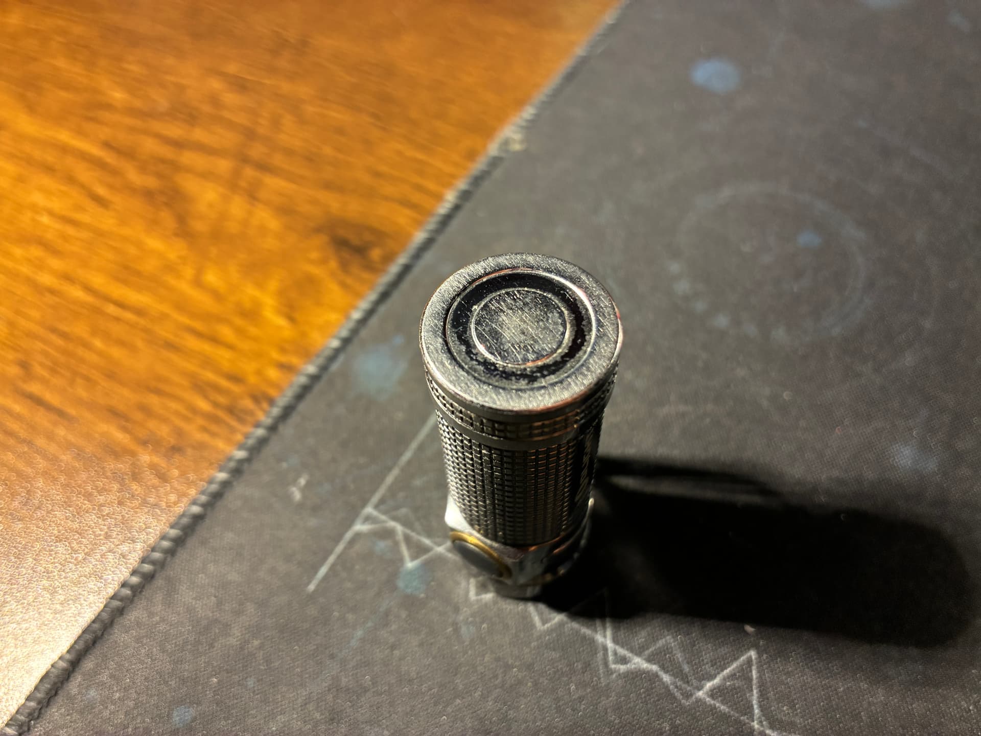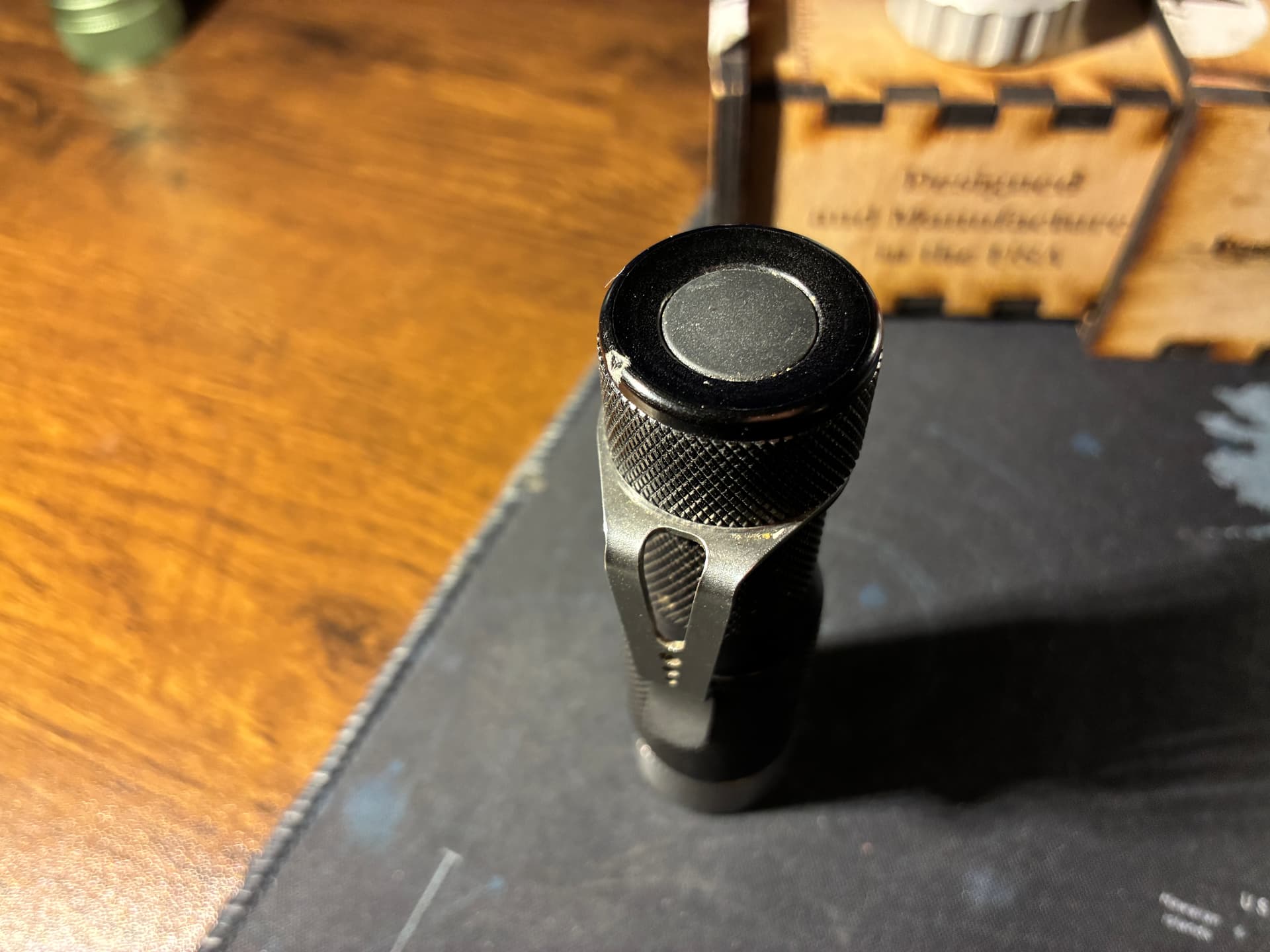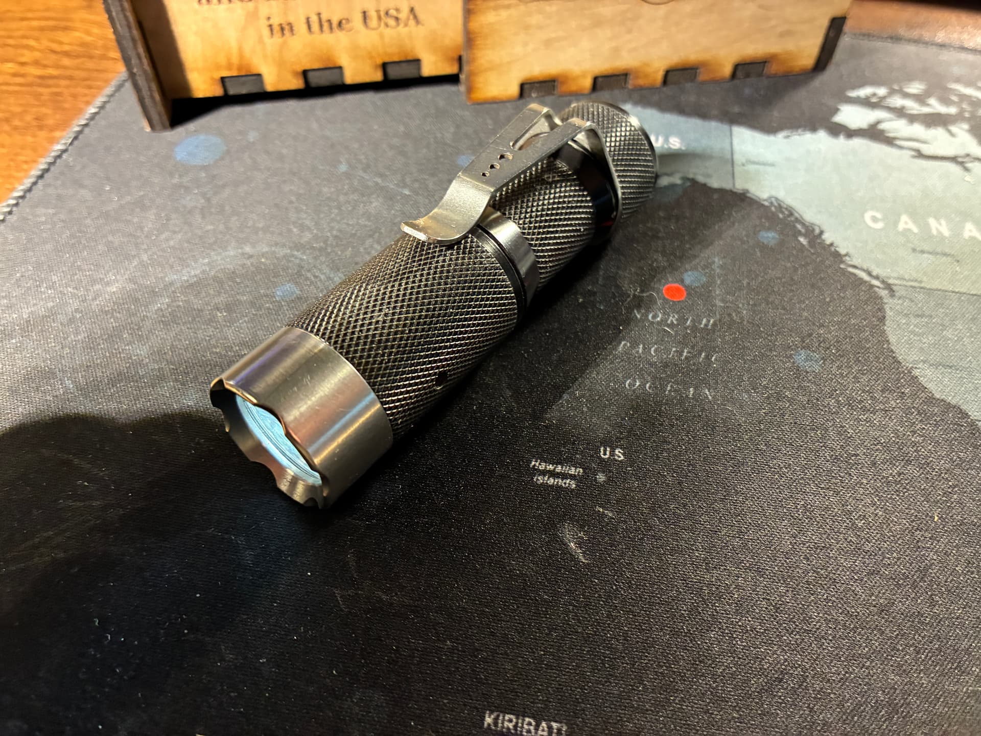 Stainless version. Think they had a handful of different versions at one time. Long since been discontinued. NW emitter but not high CRI i believe. In pretty good shape. I pocket carried it for a while. It’s got some light scratches on the tail but it is in otherwise good condition. Just the light. No box. I don’t have the original cell for it and I don’t really have any 16340 lights anymore but, if you are in desperate need of a cell I probably have a older cell around here I can throw in it. Zero Air review HERE WARNING-The cell in this light goes positve side towards the tail. It has reverse polarity protection but better safe than sorry.