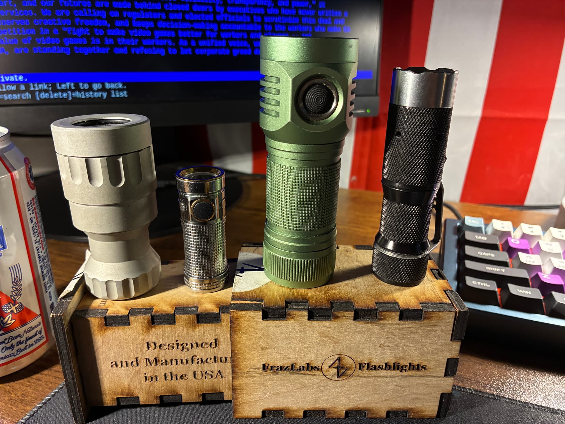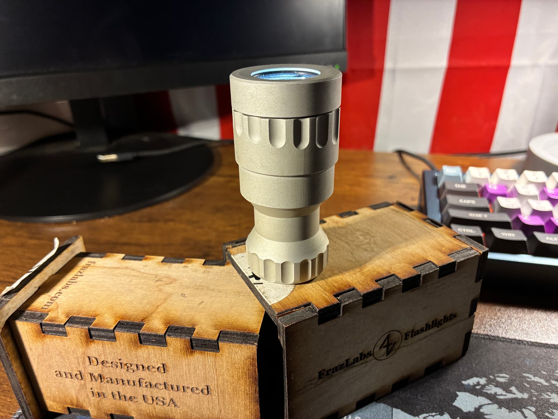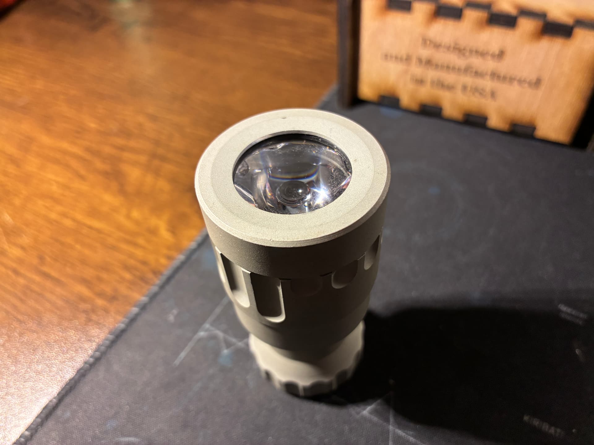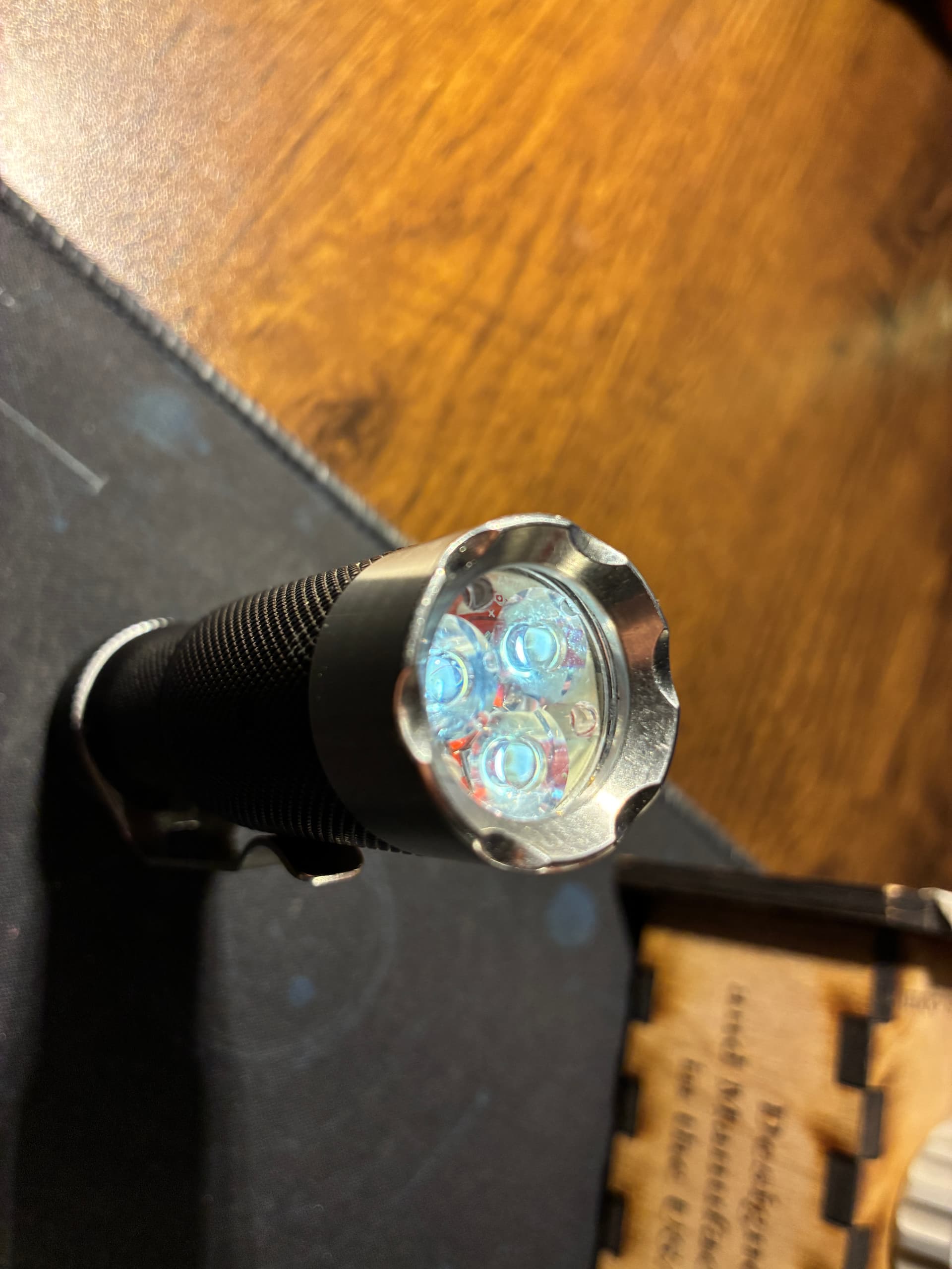 18350 version. Some kind of CW Xpl emitter in it I believe. Not too pleasant really. It’s in great shape. It never got a chance for a scratch or dent. It isn’t really that pleasant to carry around. Don’t let the name Tiny fool you, it isn’t. Tank on the other hand, yeah, it is. If you have to have the perfect emitter in it, you’re in luck. You can change the emitter out in this light in about 3 minutes with no tools. Oops sorry, you will need a phillips screwdriver for one screw. You led of choice on a 17mm board just kinda slides right in. These are made in the USA and are guaranteed for life. When you buy it from me you can send it in and they will check it out and rebuild it, free of charge. HERE is some more info on the tank.