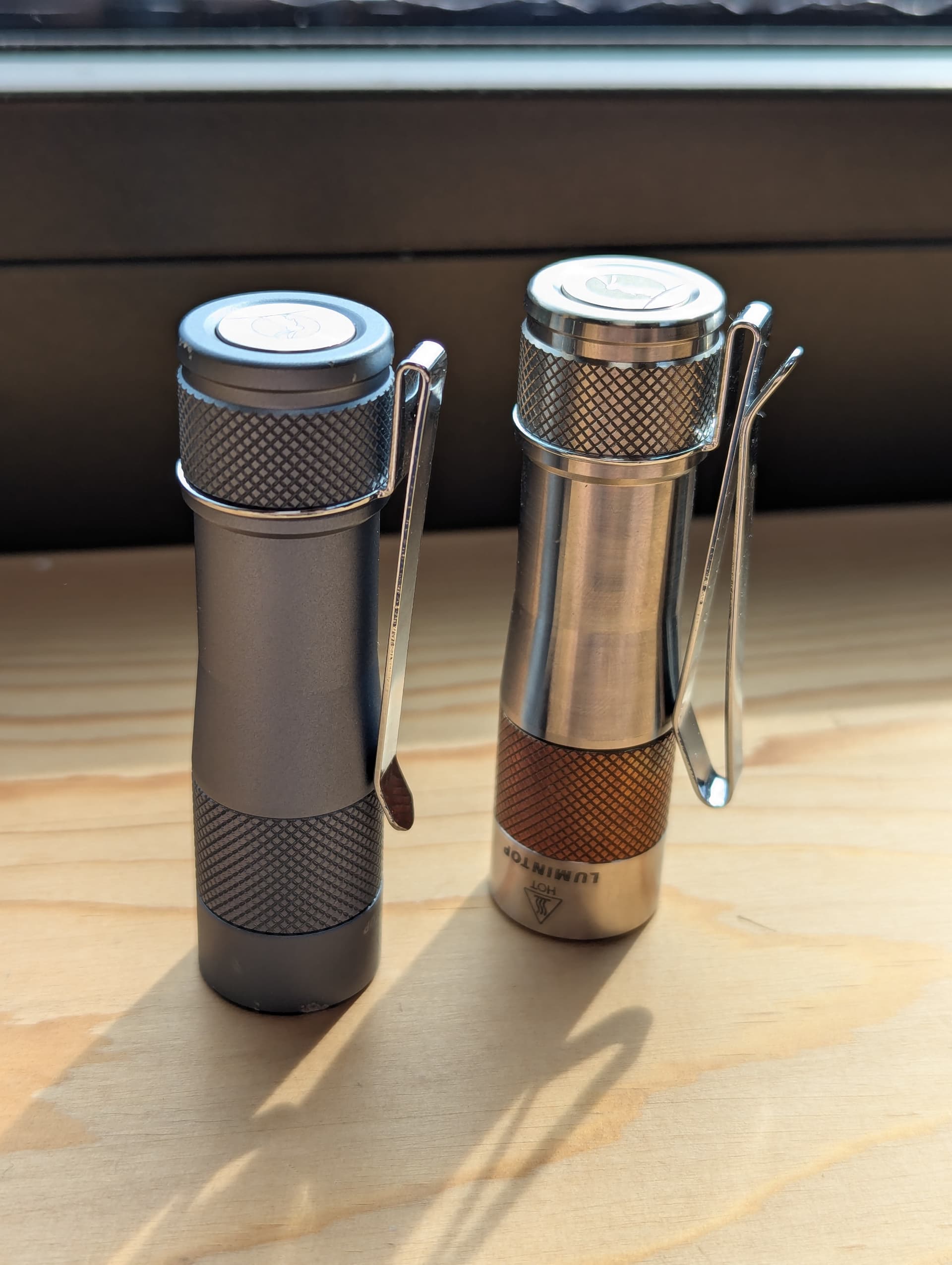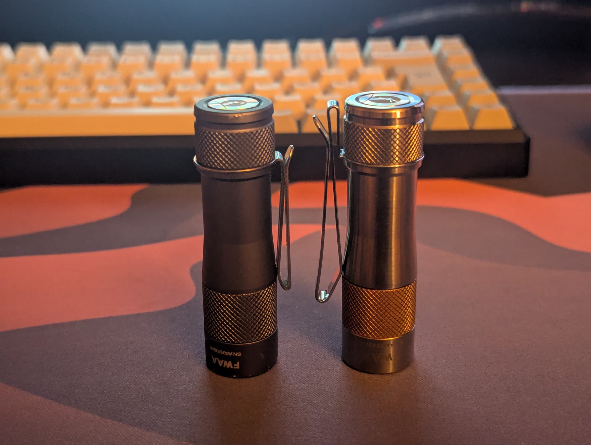 I just got a deep carry clip from Nealsgadgets (2 to be precise). While it makes the light a lot nicer to carry in a pocket, it’s way too thick. Since I never use the double sided function of any light, I’ll try cutting it off and sanding the tip round to make it a slimmer single sided clip.