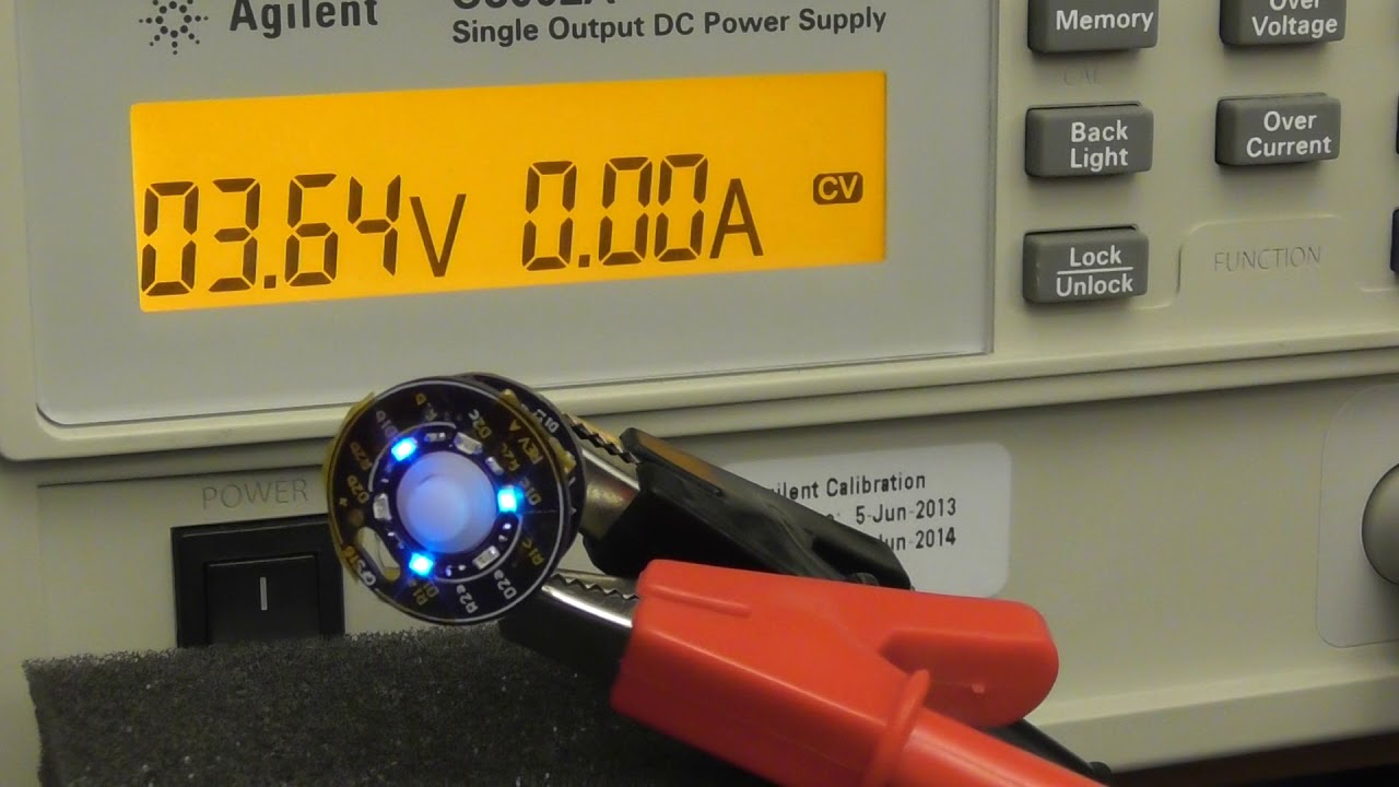Here's a video demonstrating how it switches LEDs when the voltage drops!