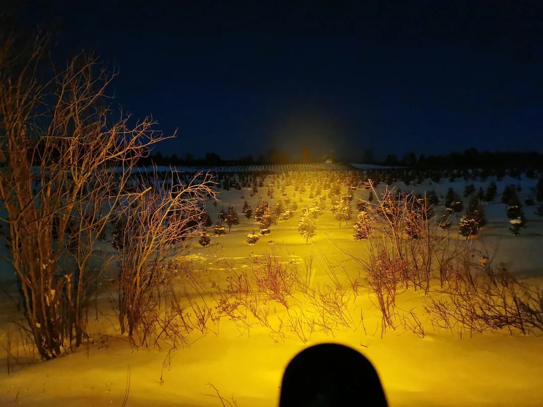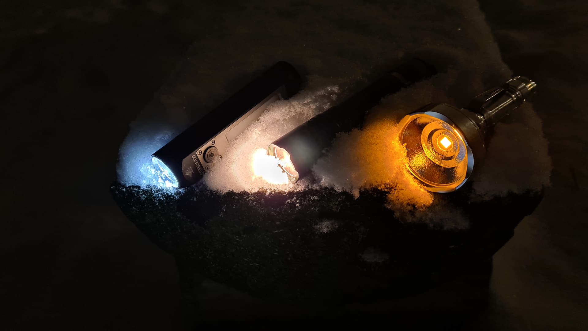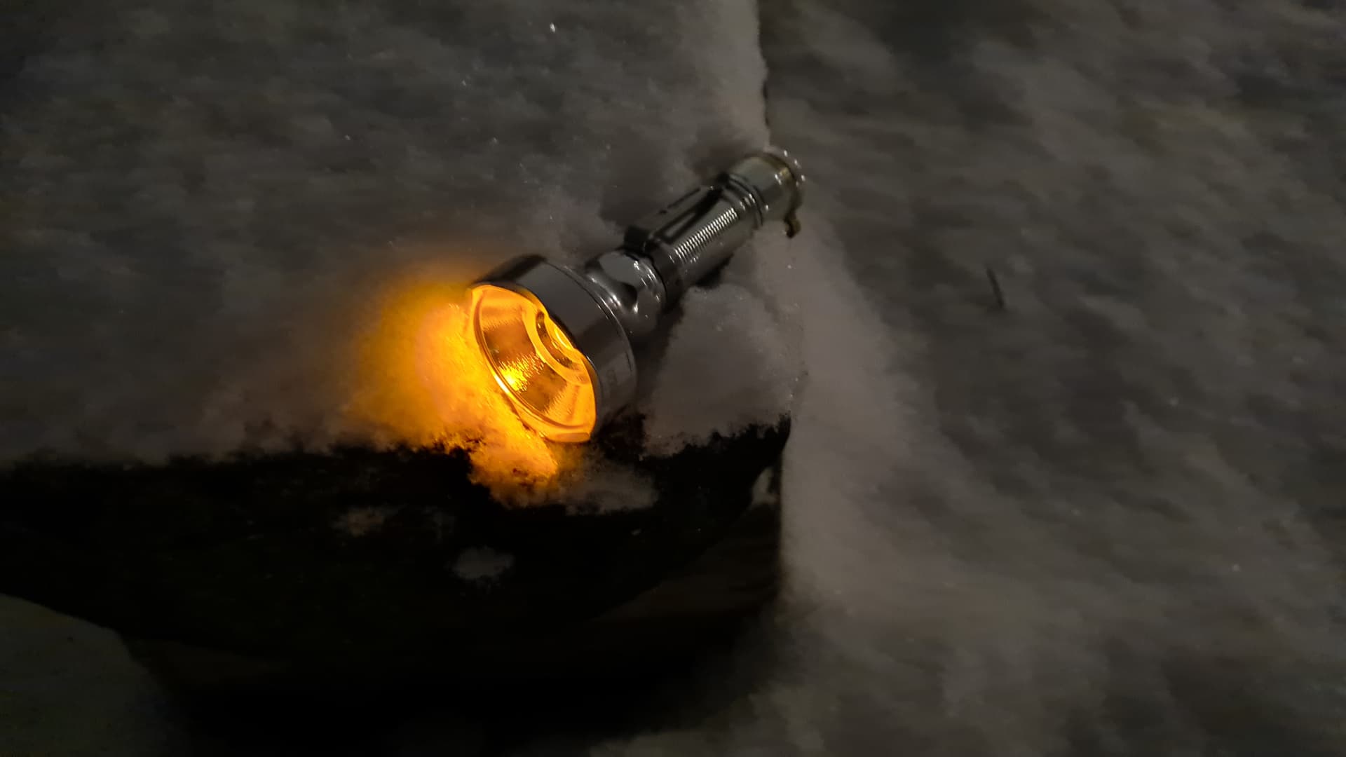 This is my first light in 1800K, a modded Mateminco FT02. It is such an amazing light in snow and ice especially. No self-blinding effects, good contrast and penetration but sacrificing a lot of output and raw power. Compared with warm white (3000K) and a normal cold white light source: