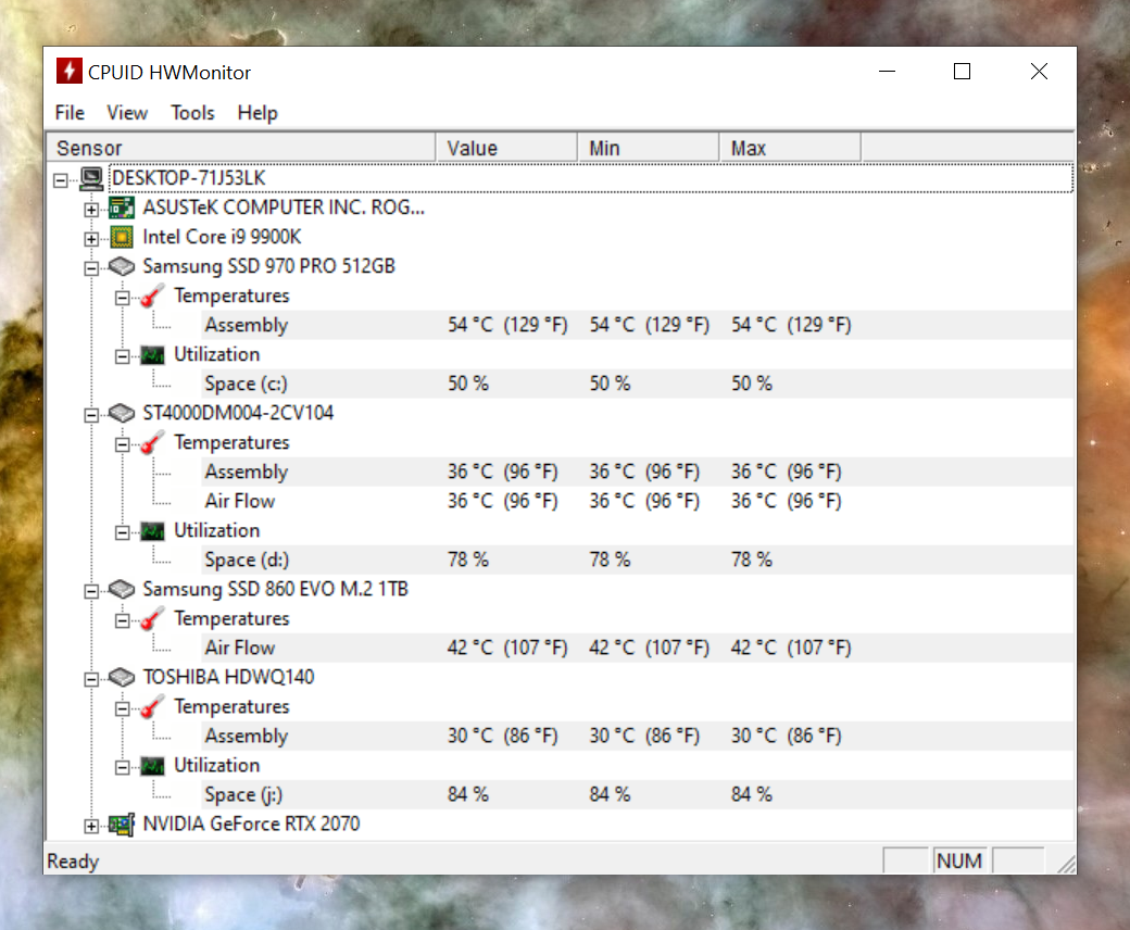 One drive is external and only used a few times a year to back up new data from the other big HDD