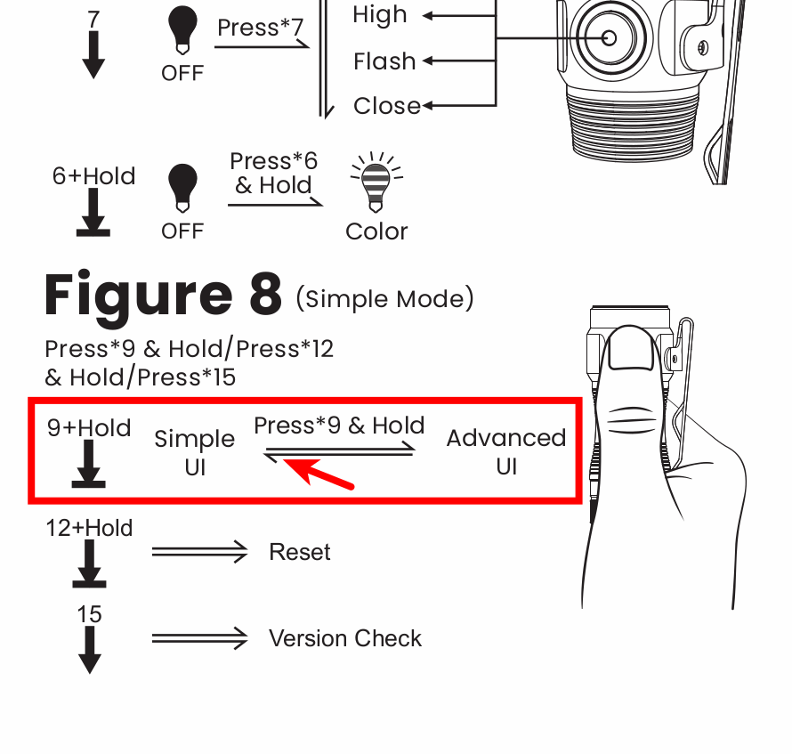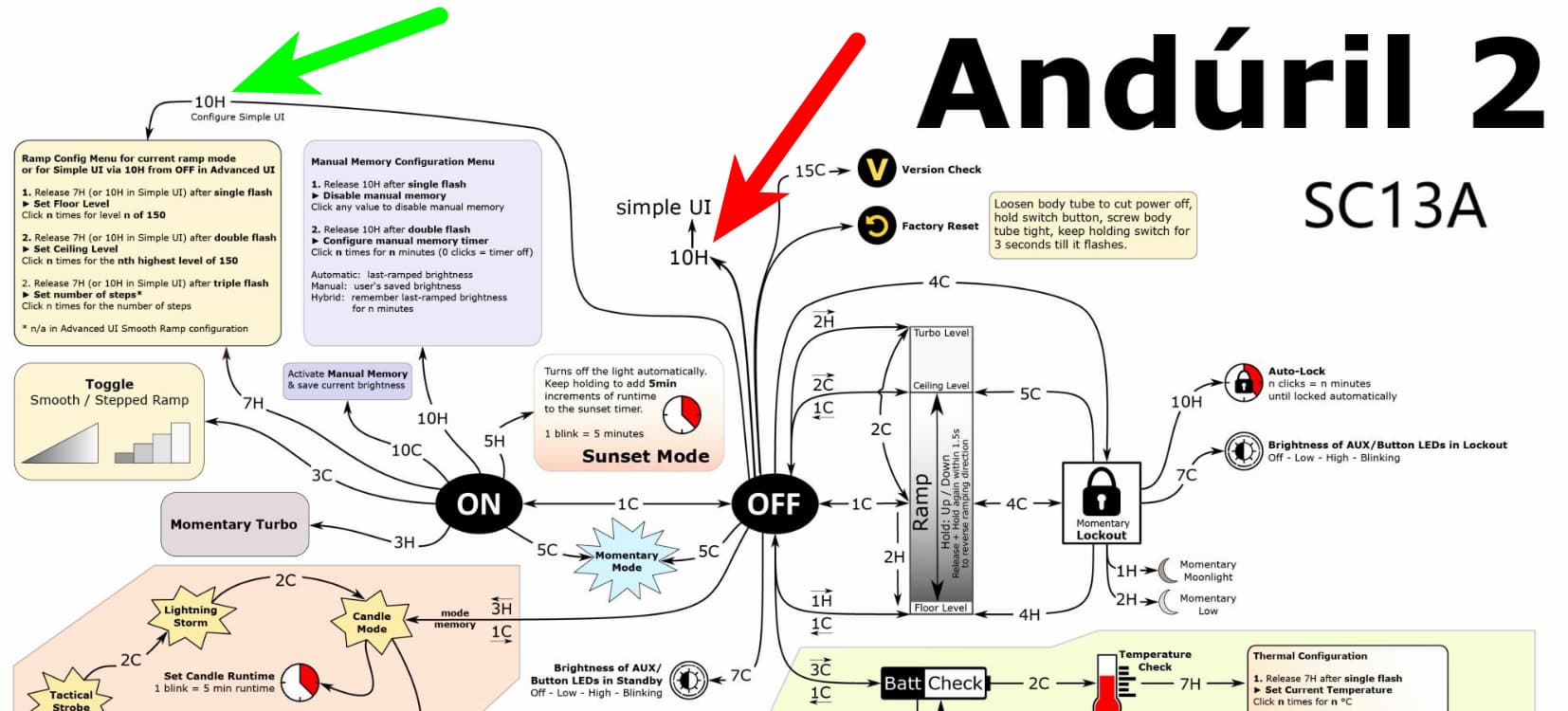 For some reason, I couldn’t locate the web page for the SC13 Copper with its user manual. But I came across the SC13A, and the user manual for this flashlight also wrongly states 10H for switching from Advanced UI to Simple UI: