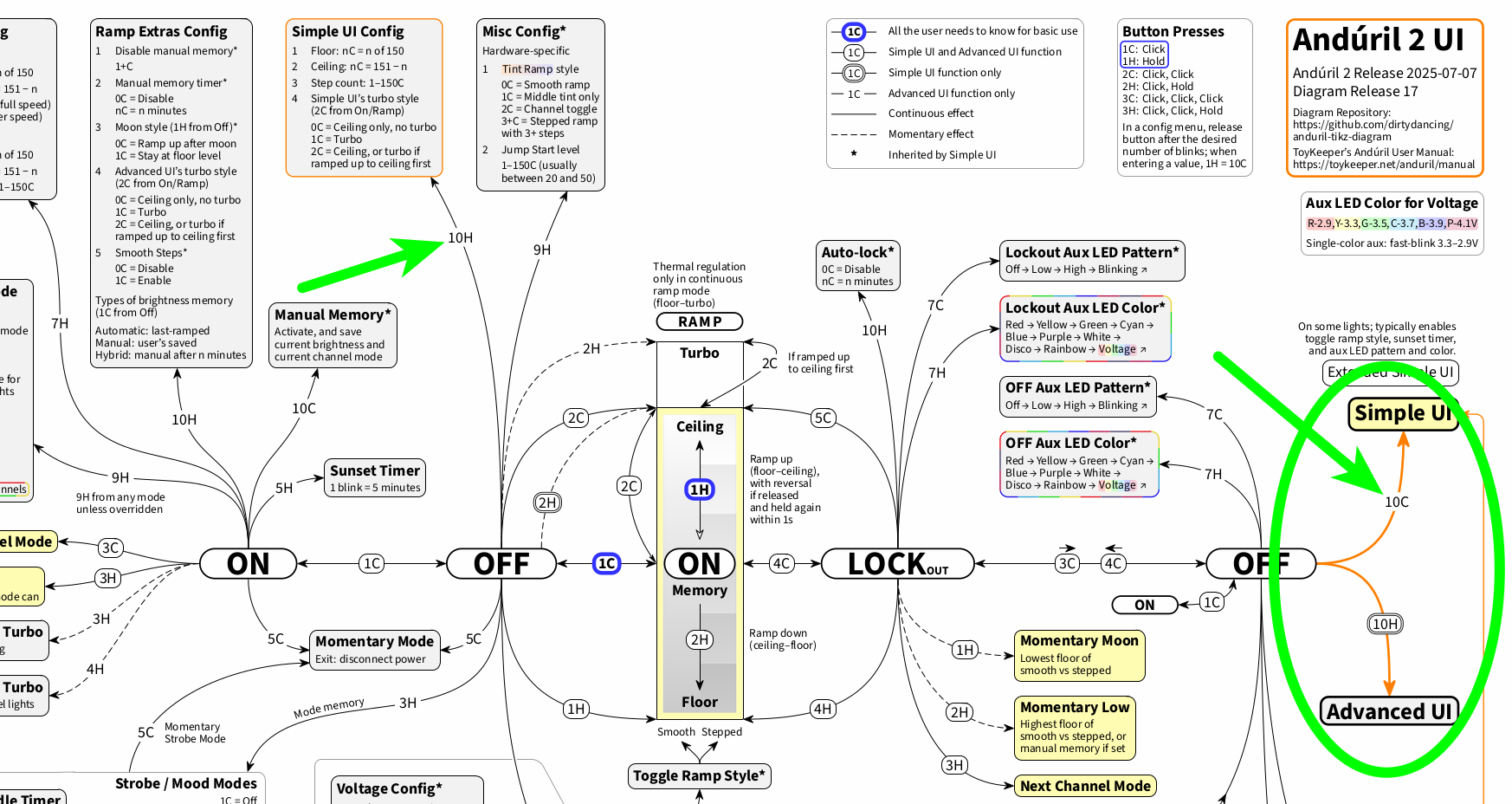 By the way, this situation has prompted me to visually highlight the UI switch lines in a new release of the diagram I referred to above, so all of this is helping to clarify the Anduril 2 documentation: