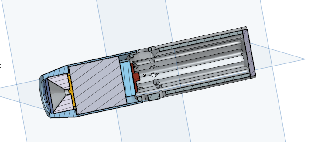 I was really happy with this version using a Nichia 219C, a convoy S2+ reflector, and a QLITE REV.A 7135*8 driver. The only thing was the glow filament kept discoloring so I ditched it for the final product.