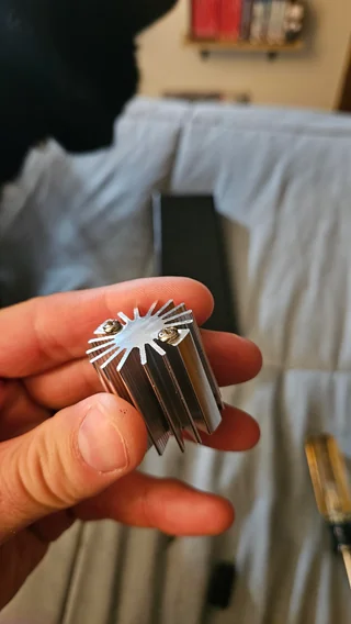 From here, i moved to if i wanted to make more for my family i wasnt going to spend what i did for a heat sink for it to take a month and a half coming from china. So I took to the internet and sourced a voron v6 hot end heat sink which, though smaller, should work better as the fins will be oriented vertically when being held