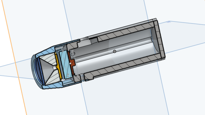 Here I streamlined the entire thing, shrunk the screws from M3 to M2, and changed from a reflector to a tir lens. I figured since i have those cutouts on the side I should use them