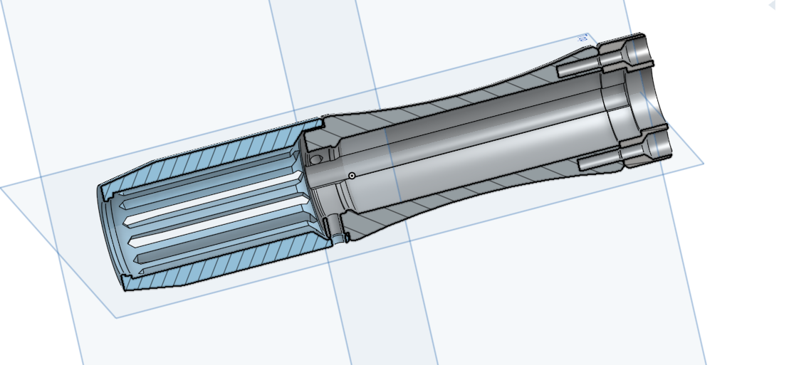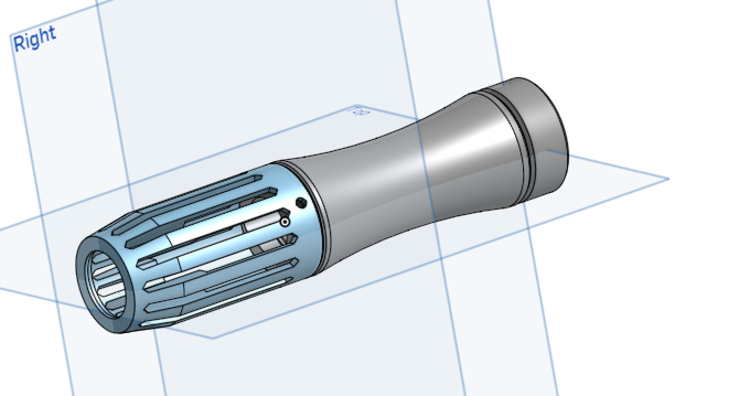 V3 had large changes, we can see I moved the switch to the tail which allowed me to add a nice curve to the handle/battery portion. I also thickened up the walls around the heat sink at this point.