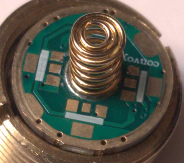 Checked and verified LED still works by directly connecting a Purple EFEST IMR14500 to spring on bottom of driver board (+), and - on the LED board.
