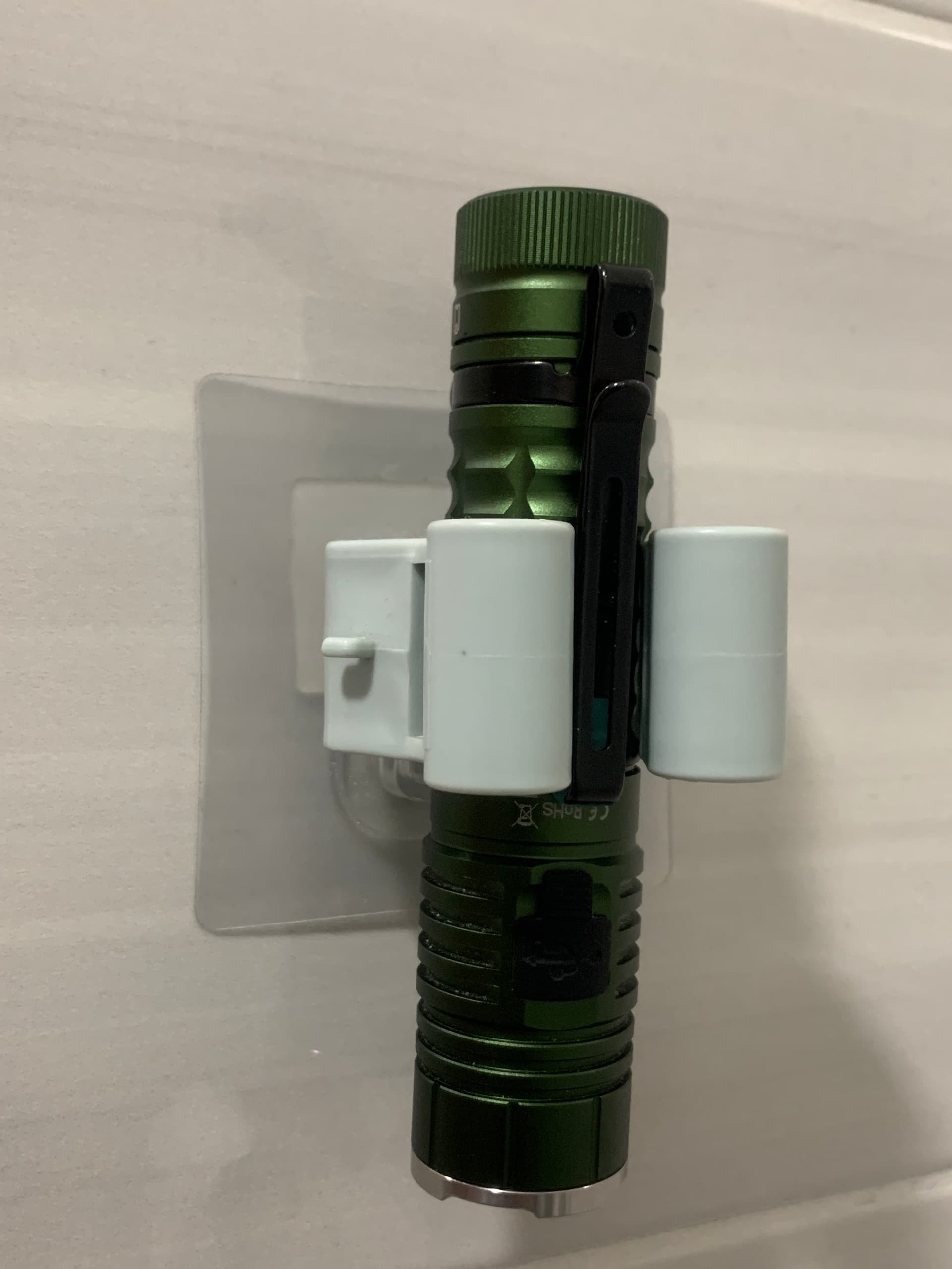 I ordered some of these stainless steel broom hooks on the way. I like the fact that there is a rubber backing that you can adjust for the diameter of the torch’s diameter and it won’t scratch the anodizing on the body. These broom hooks normally accommodate up to 1-1/4" diameter which is great for torches like the SK68, 501B, 502B, C8, T6 Convoy etc…