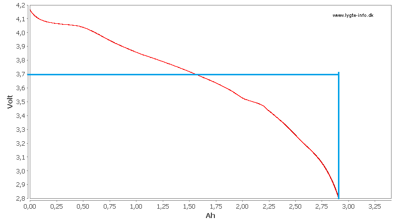 In the graph above, the red area is the true total energy in mWh, while the blue area is the naive product of nominal voltage and mAh-capacity. In most cases, the latter is a decent enough approximation of the former.