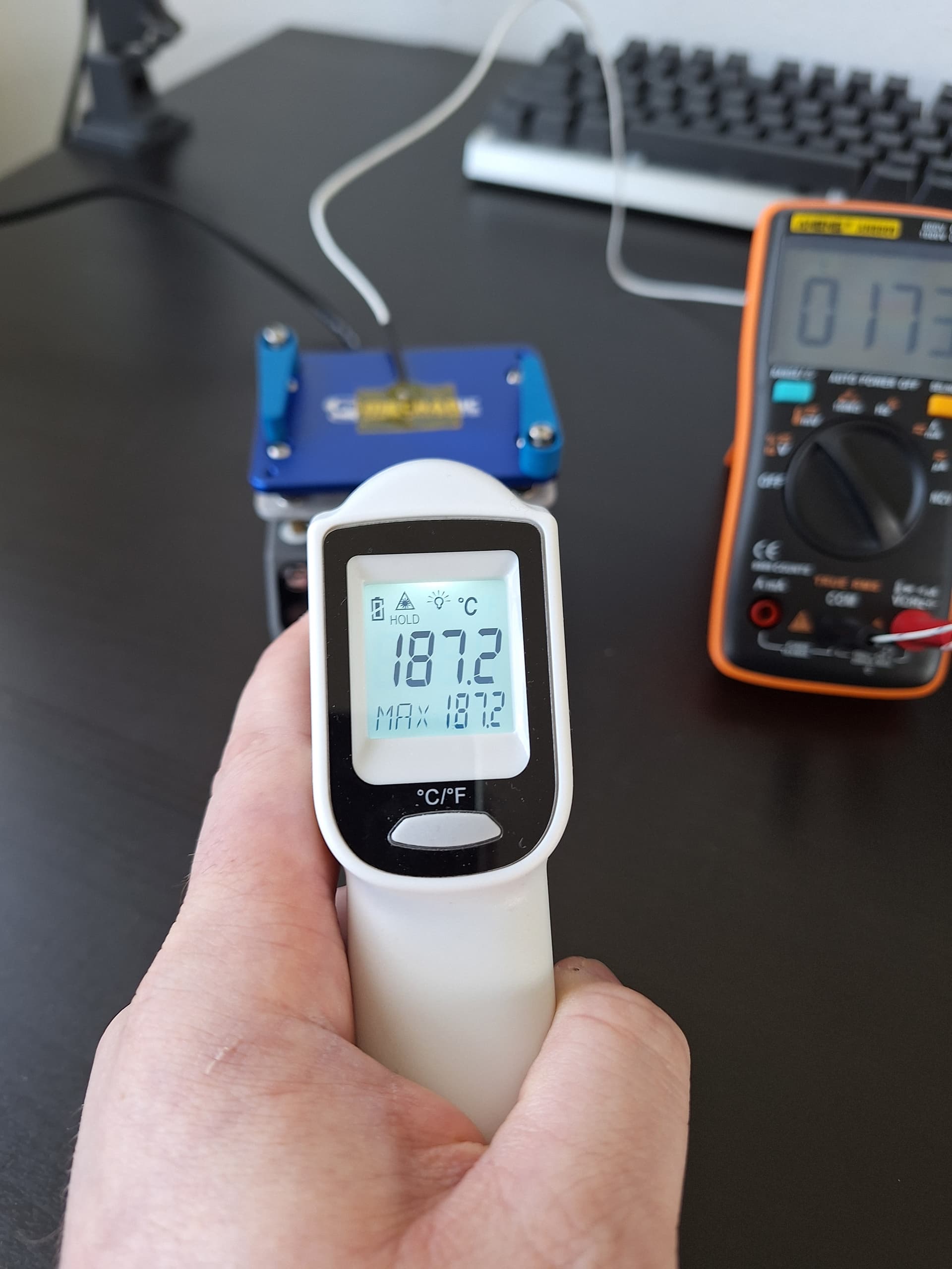 Above 210°C my thermocouple sleeve started to smoke, so the measurement of it’s max temperature (of 260°C) I only took with my IR thermometer: