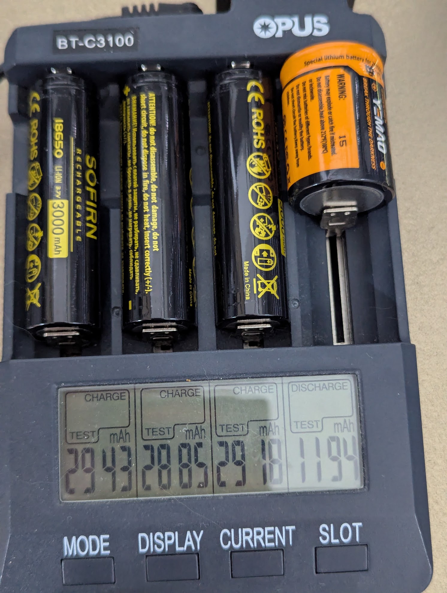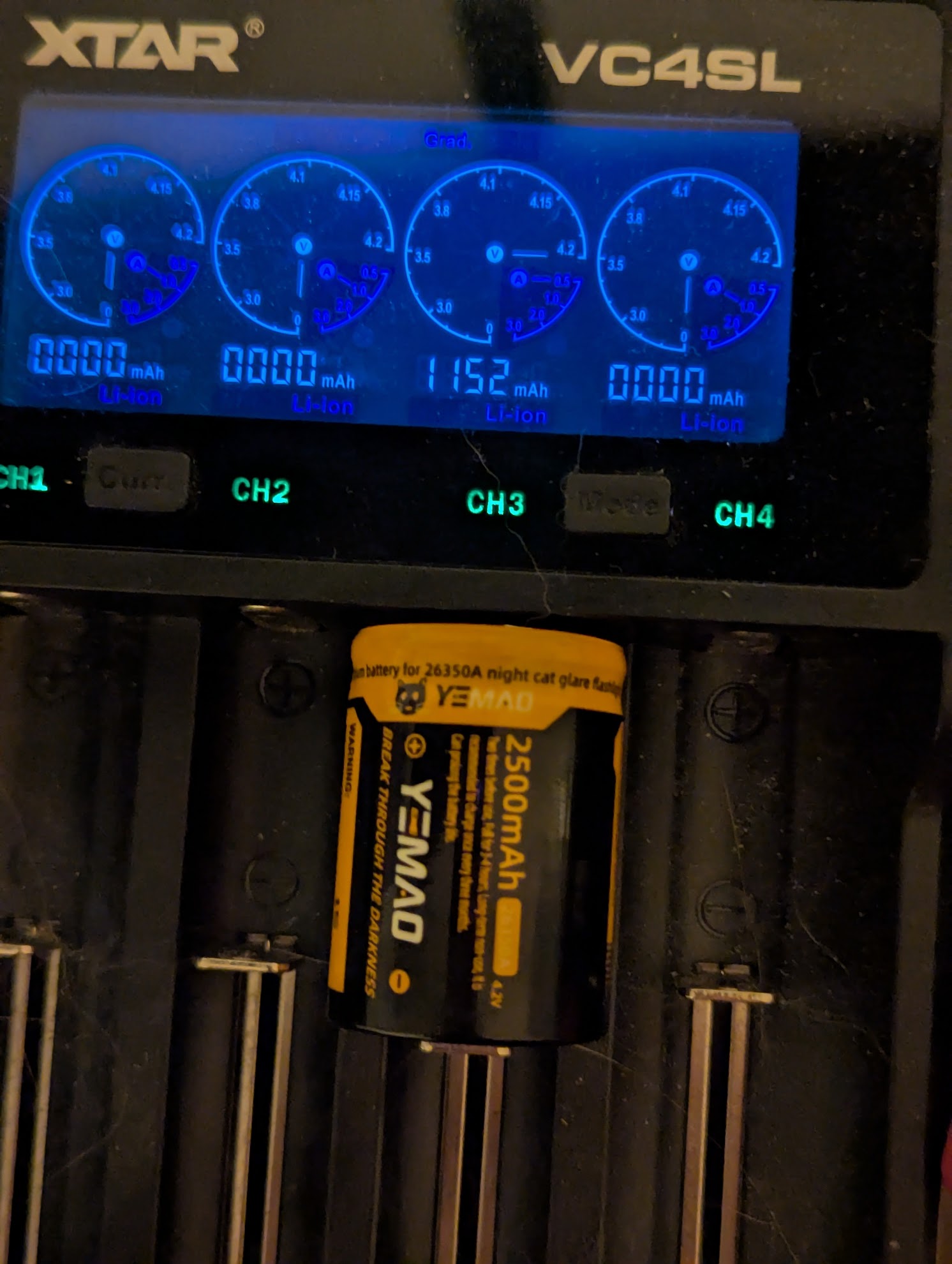 Then I tested the cell, claimed 2500mAh which is realistic for a 26350 - well, not even half of that, probably a 18350 repacked in a 26350 case?