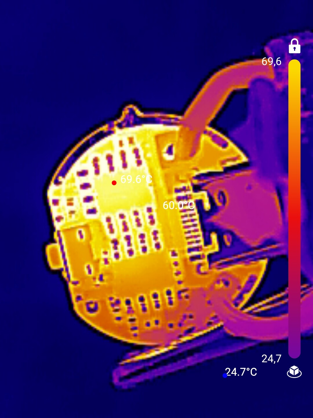 Then I grabbed my IR cam with the Closeup Lens and located, that the 4056 charging chip was hitting 90° after a couple of seconds.