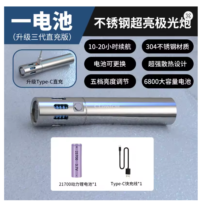 I just stumbled upon a “cheap”/Chinese stainless steel flashlight I haven’t seen before. It’s maybe a bit more on the upper end of the ‘cheap-scale’, but given the somewhat unique looks and material, it might be an interesting flashlight.