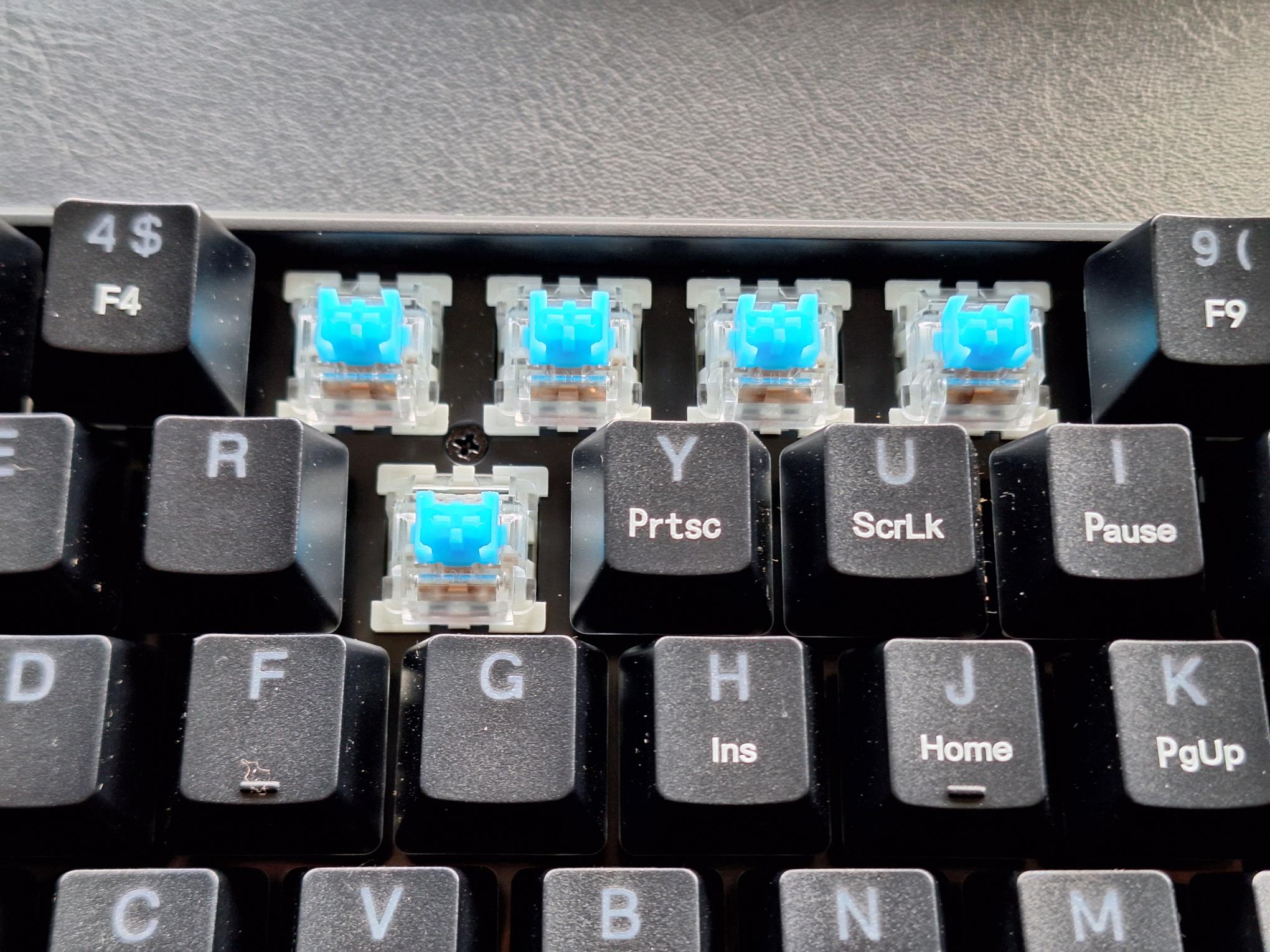 But the fact that they are hot swappable is still a positive thing, in the case that if switches would start to experience chatter or something like that, you can always swap them with keys you rarely use like some of the F-keys for example.